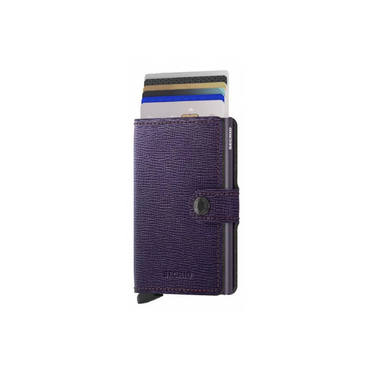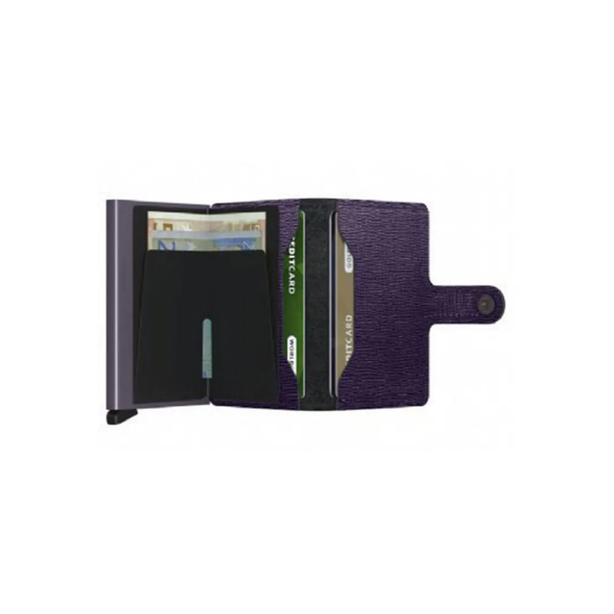 - Snap button design, embossed logo, slide mechanism, one cash slot, two card slots, one aluminium card case