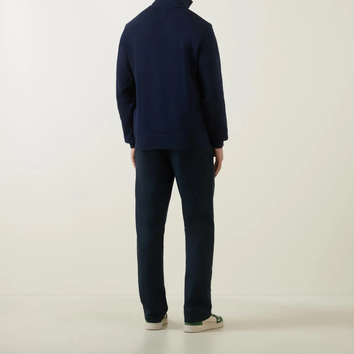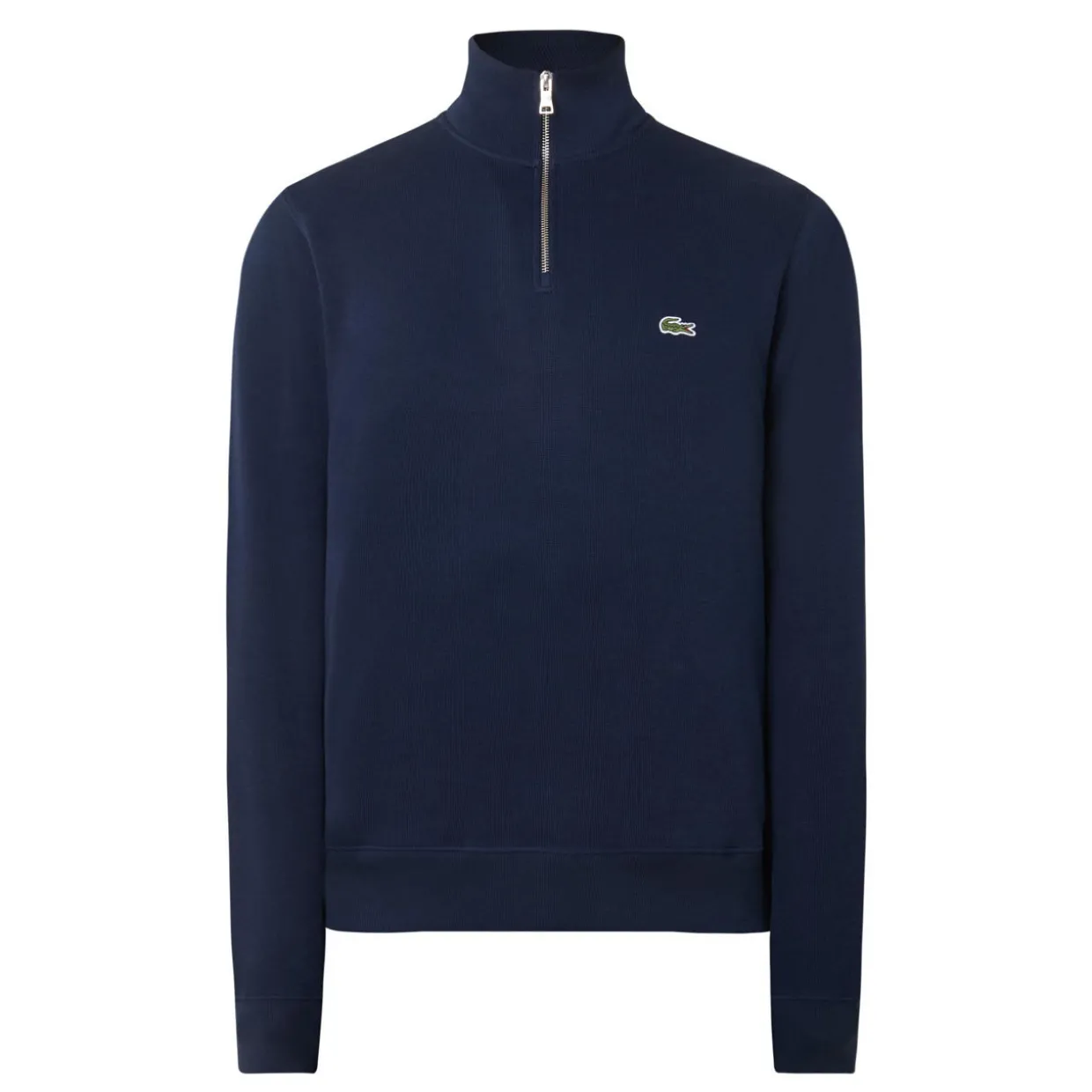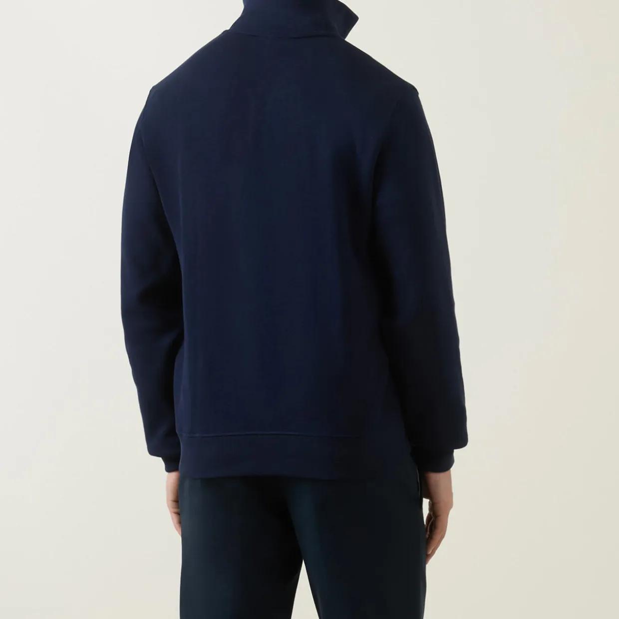 - Crocodile logo, half-zip fastening, funnel neckline, long sleeves, straight hemline, ribbed trims