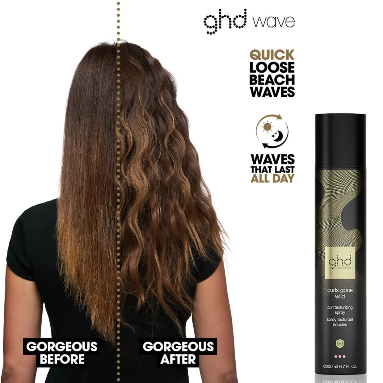 Description: Curls Gone Wild, your secret weapon for creating the ultimate tousled look; adding long-lasting texture and buildable volume to ghd curls and waves.