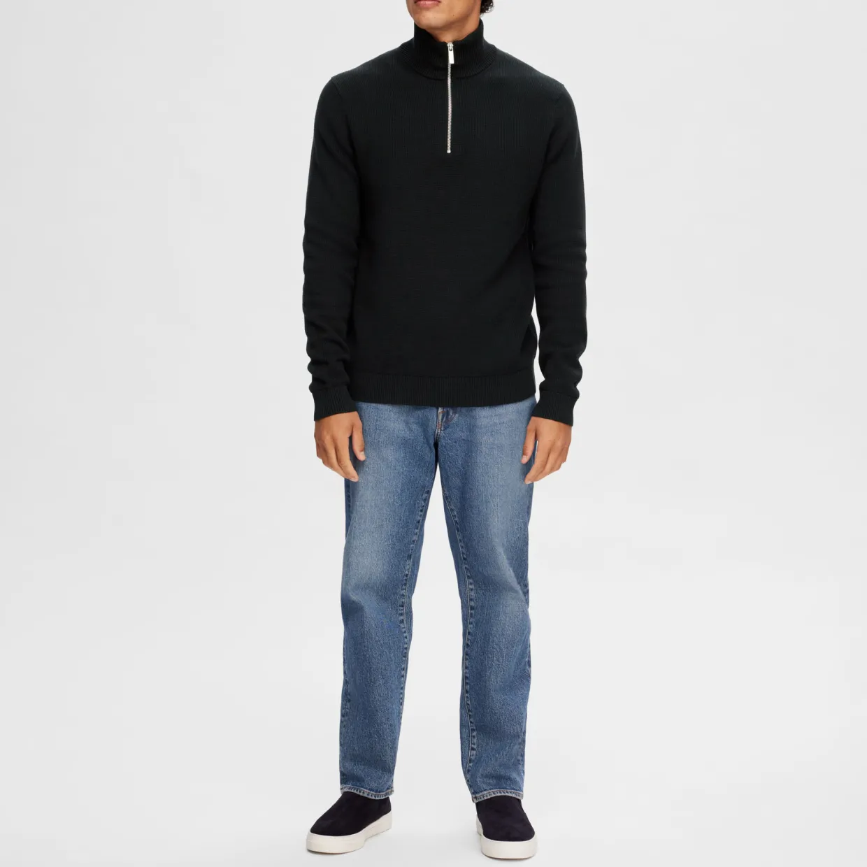 - High neck, long sleeves, ribbed cuffs, half zip fastening, regular fit