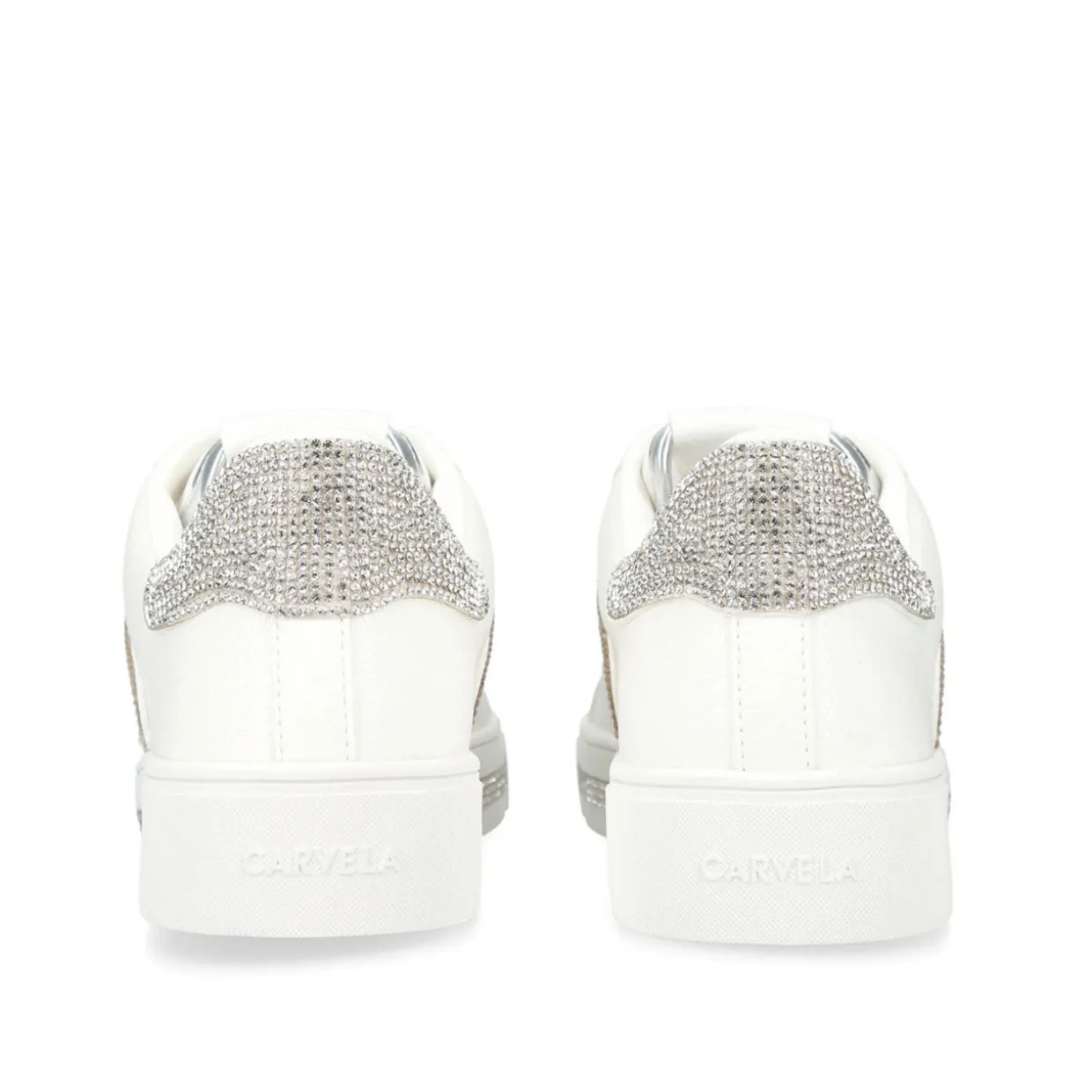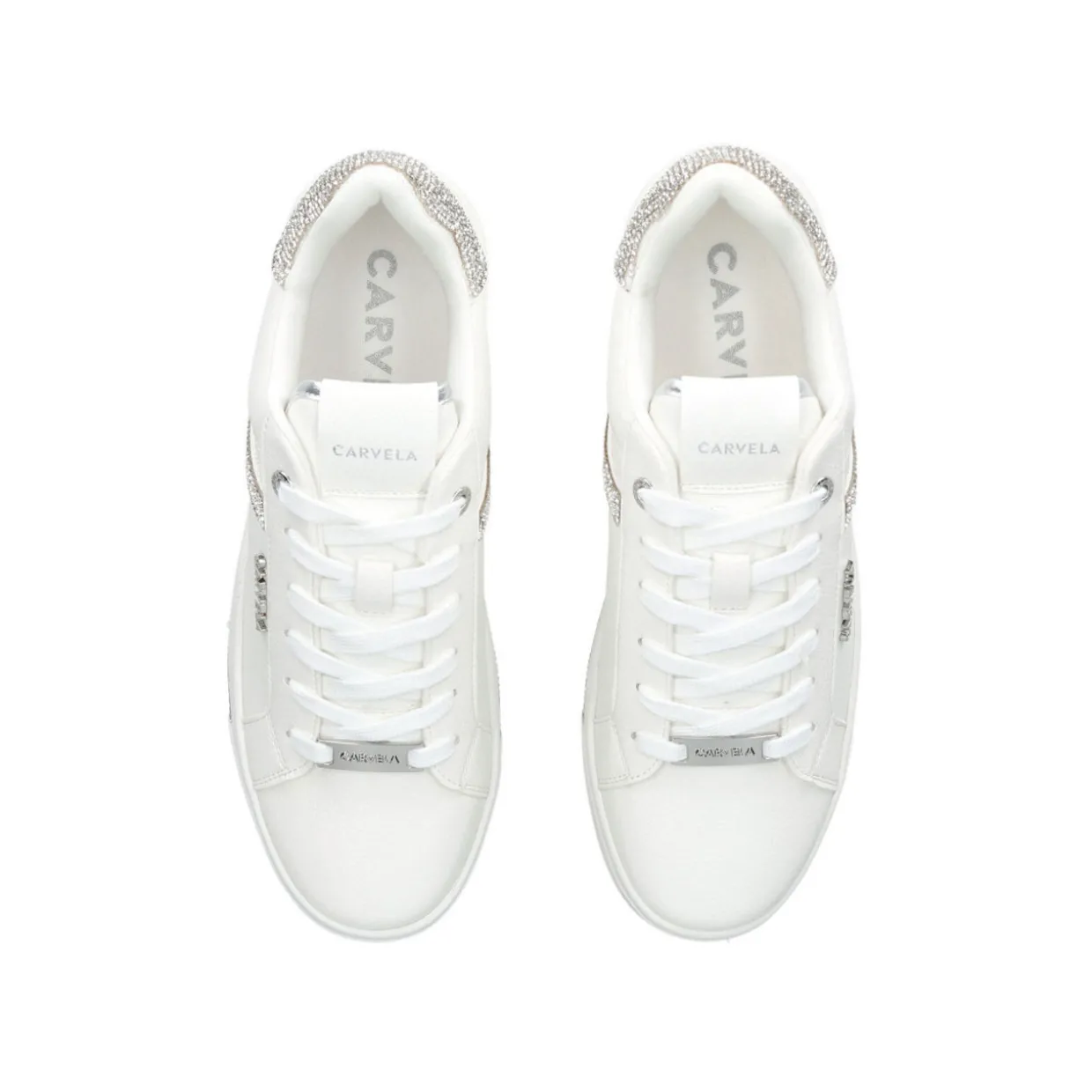 - Round toe, lace-up fastening, low-top profile, silver-tone logo hardware, logo details, jewel embellishment