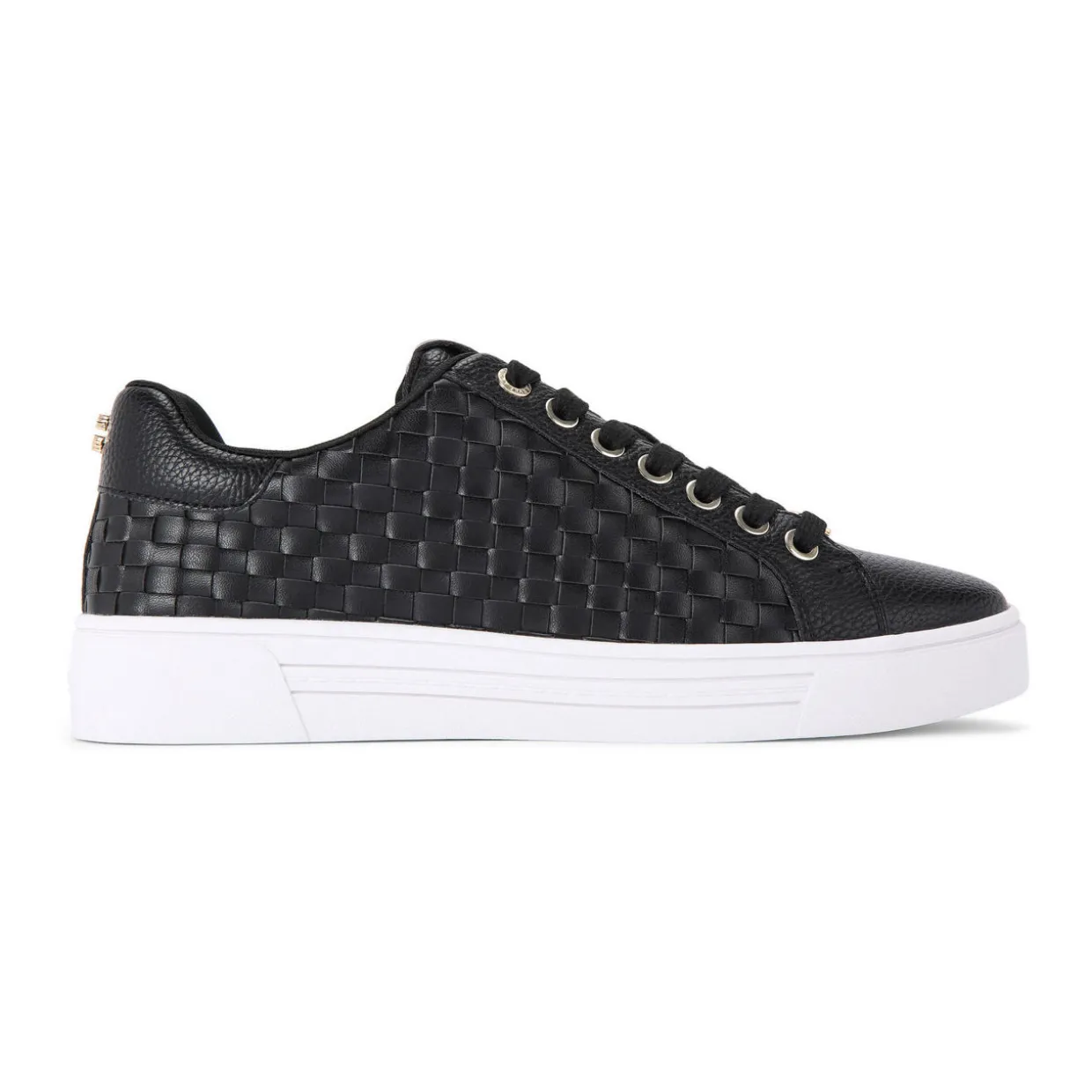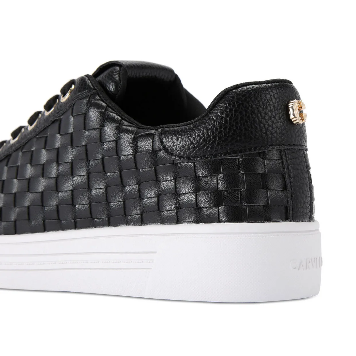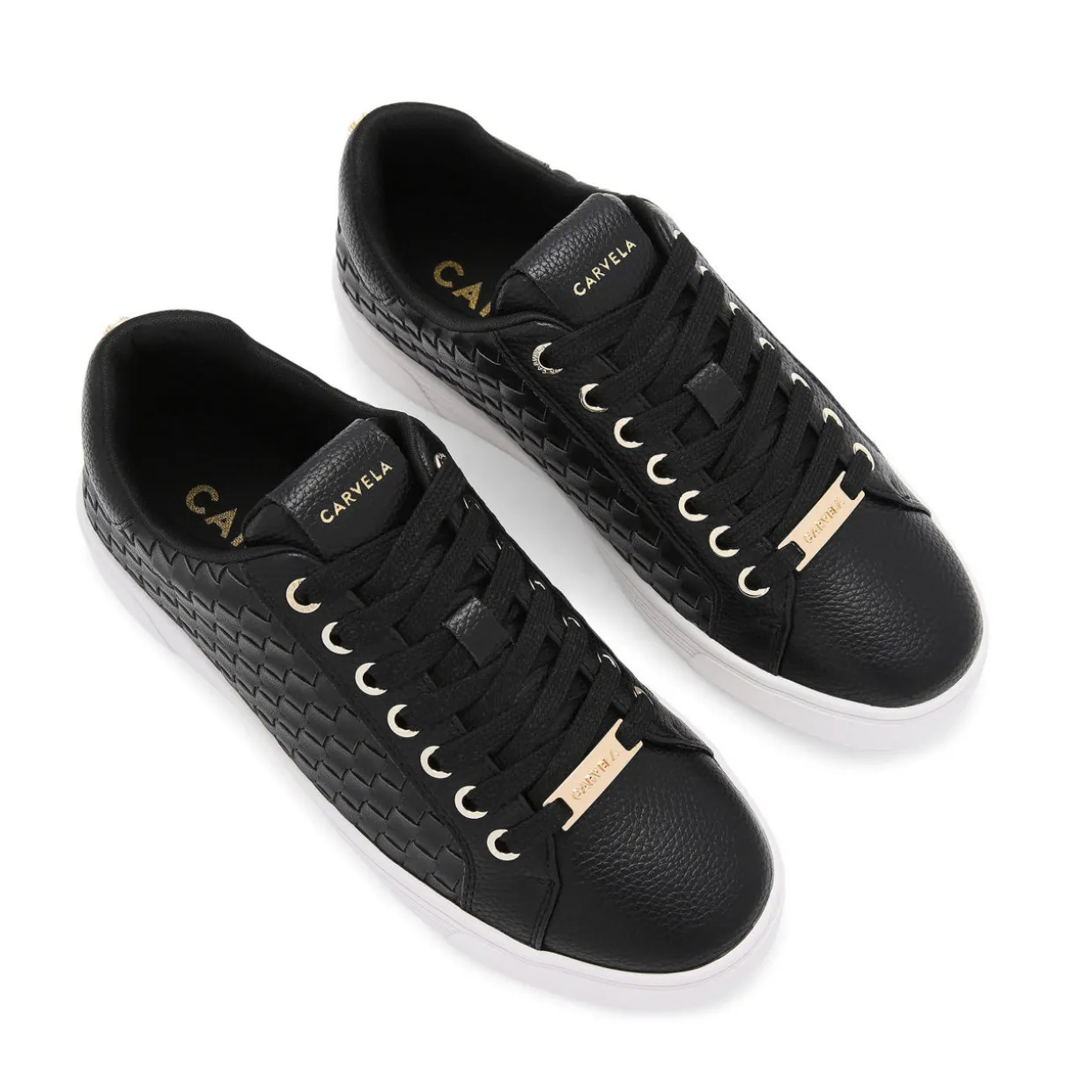 - Woven side panels, low-top, lace-up fastening, gold-tone hardware, embossed foil logo on the tongue, Icon C stud at heel, branding details, round toe