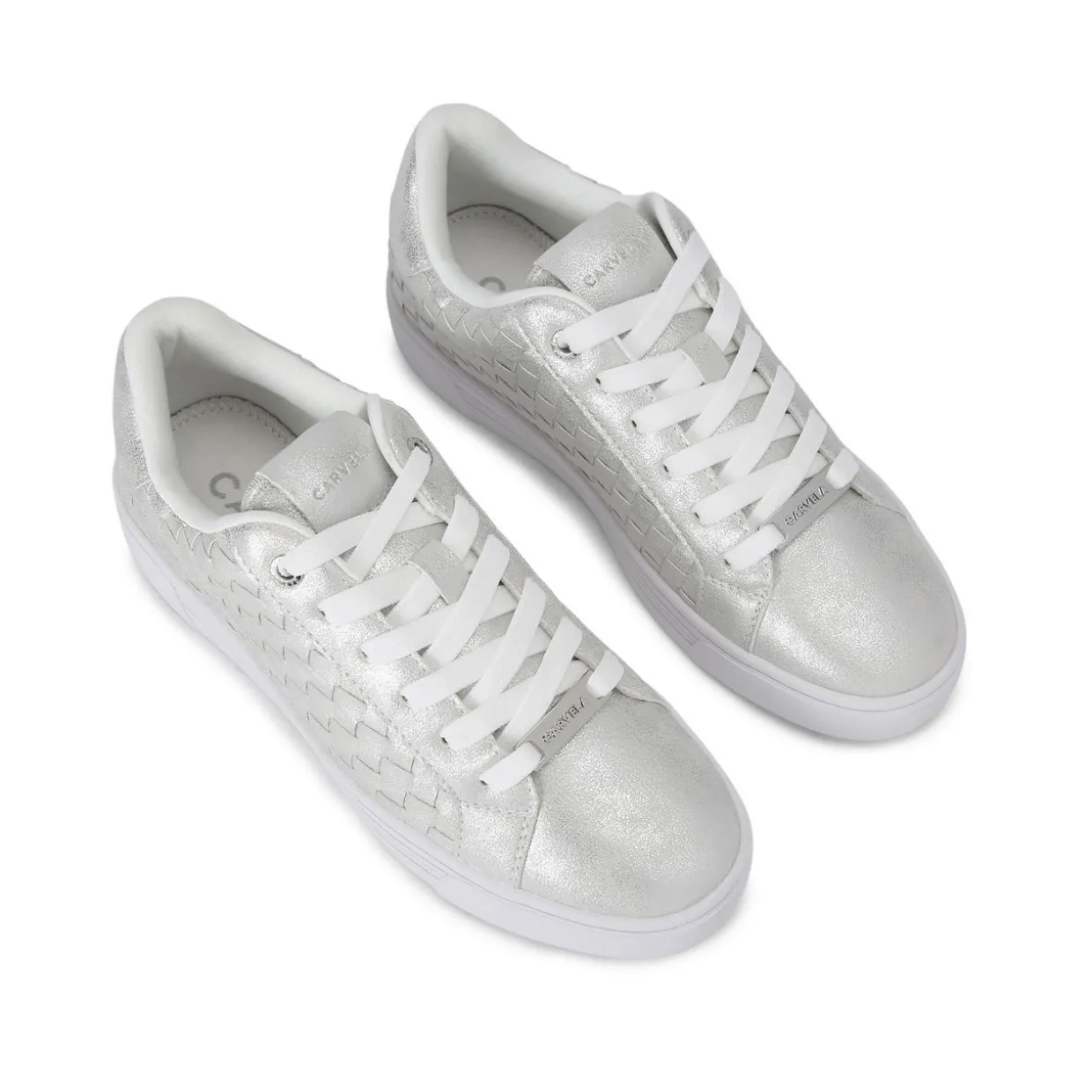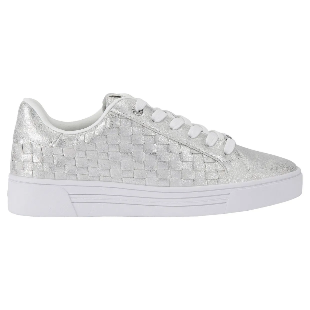 - Round toe, woven upper, lace-up fastening, silver-tone hardware, embossed foil logo on tongue