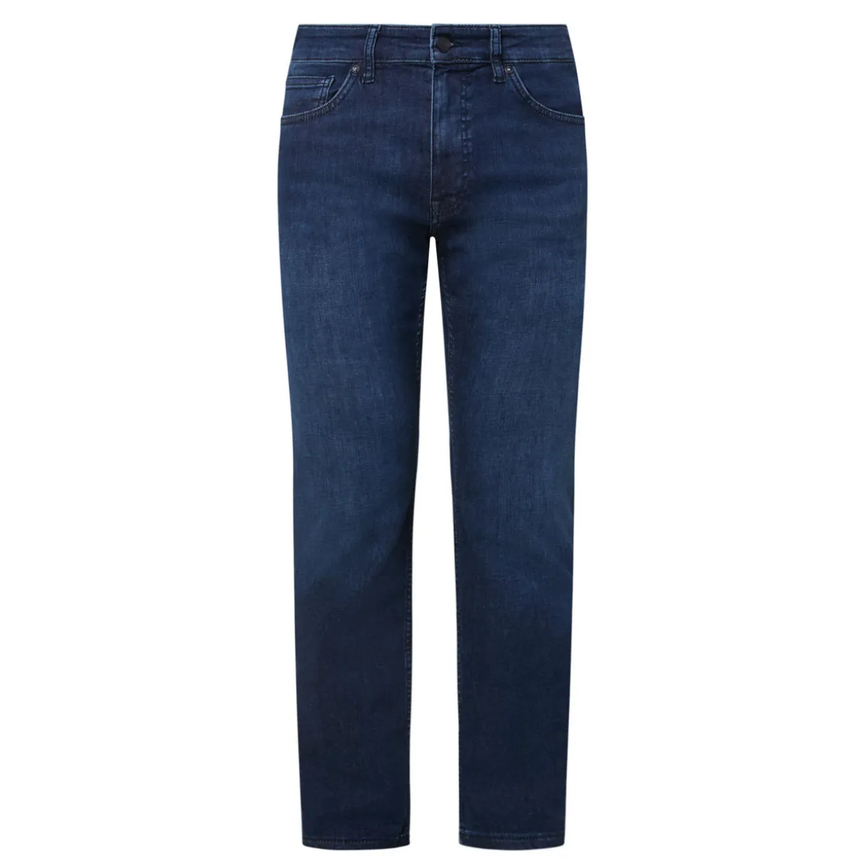- Button and fly zip fastening, belt loops, five pocket style, whiskering and faded details, logo badge at rear