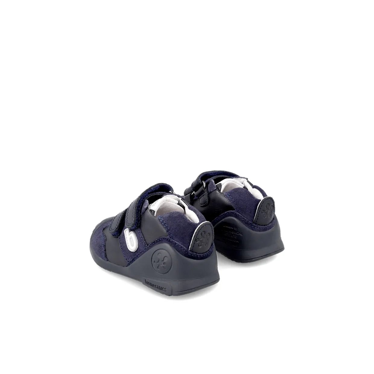 - Soft, flexible, broad toe and instep, flat removable and breathable insole, micro-perforated lining, thermoregulation effect, double straps, tape and loop fastenings, brand logo details, suede finish, reinforced toe