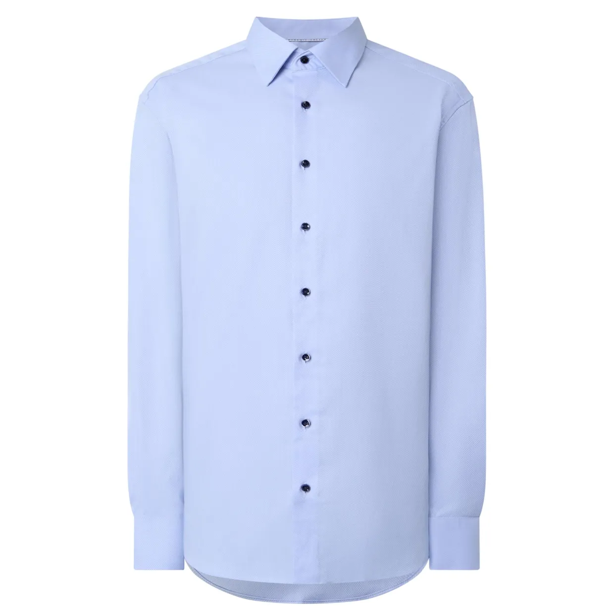 - Kent collar, button fastening, long sleeves, single-cuff, curved hemline, lightweight, non-iron and easy care