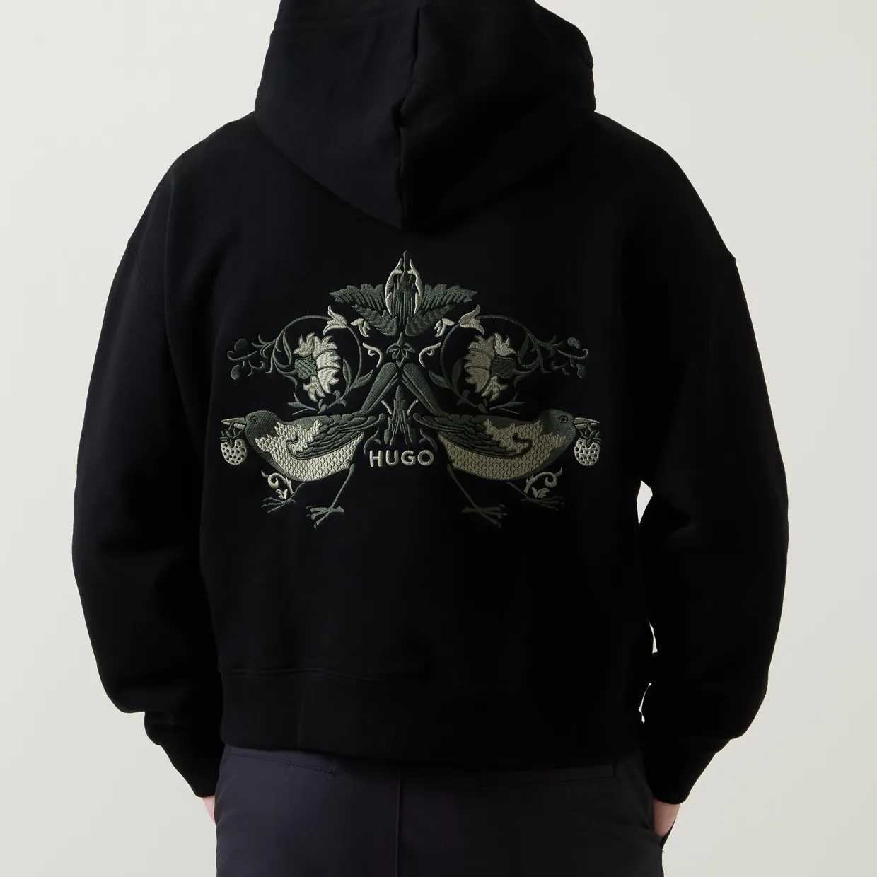 - Bird and floral embroidery, long sleeves, hooded, logo detail, ribbed trims, straight hemline
