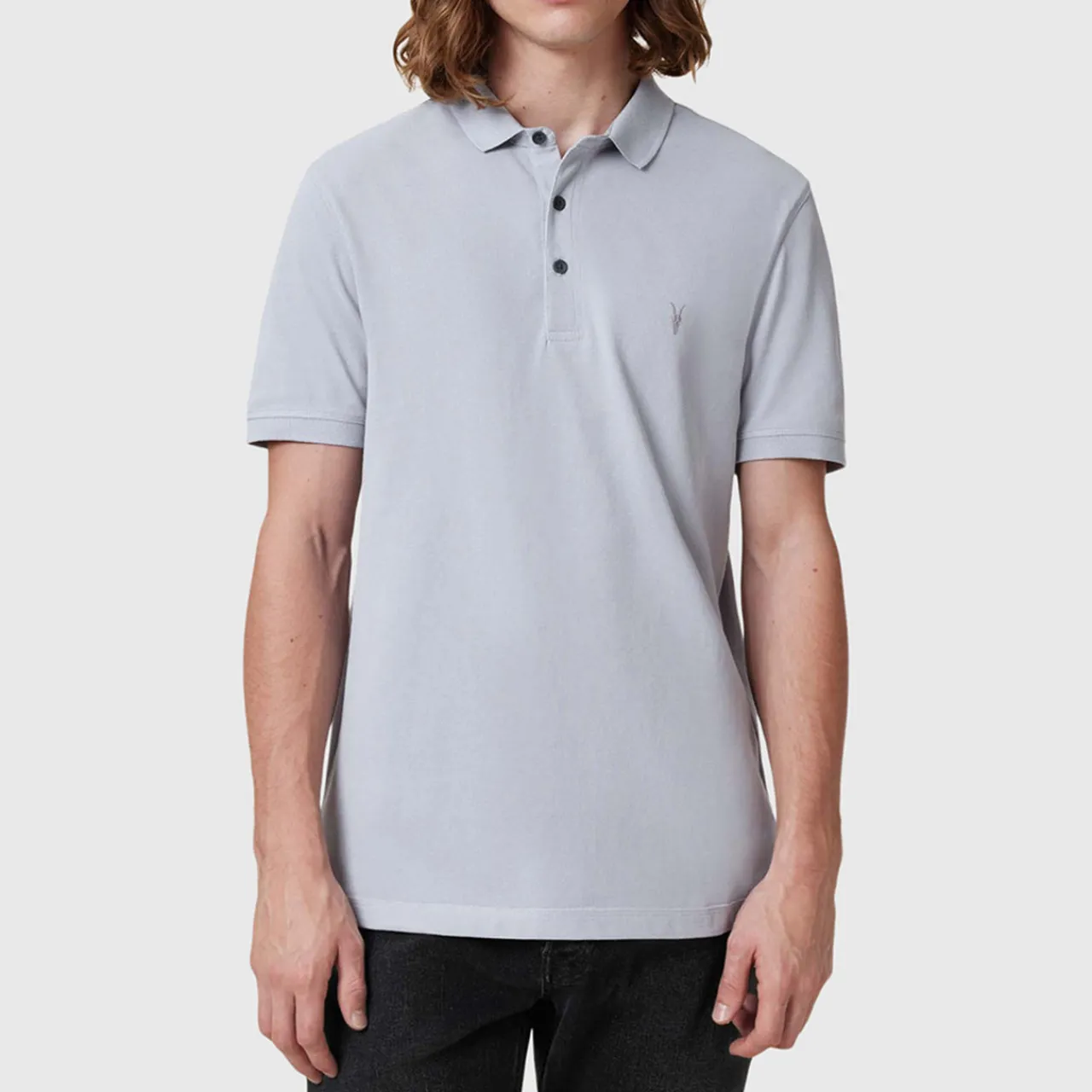 - Short sleeves, polo collar, three-button placket, Ramskull logo embroidery, tonal stitching, straight hemline, smooth fabric