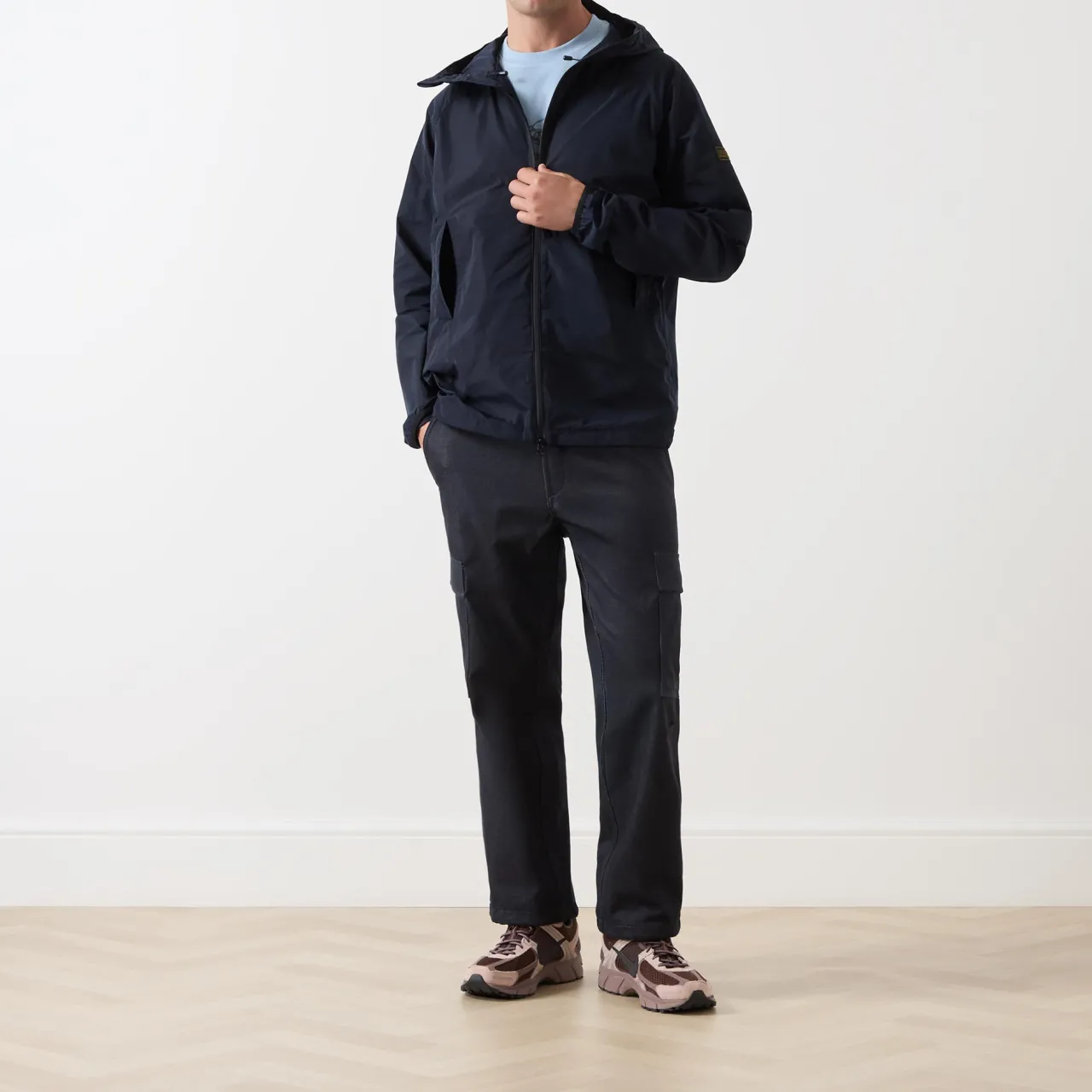 - Adjustable peaked hood, throat guard, two-way zip fastening, dropped hem at back, two storm welt pockets, bound cuffs, showerproof, logo details