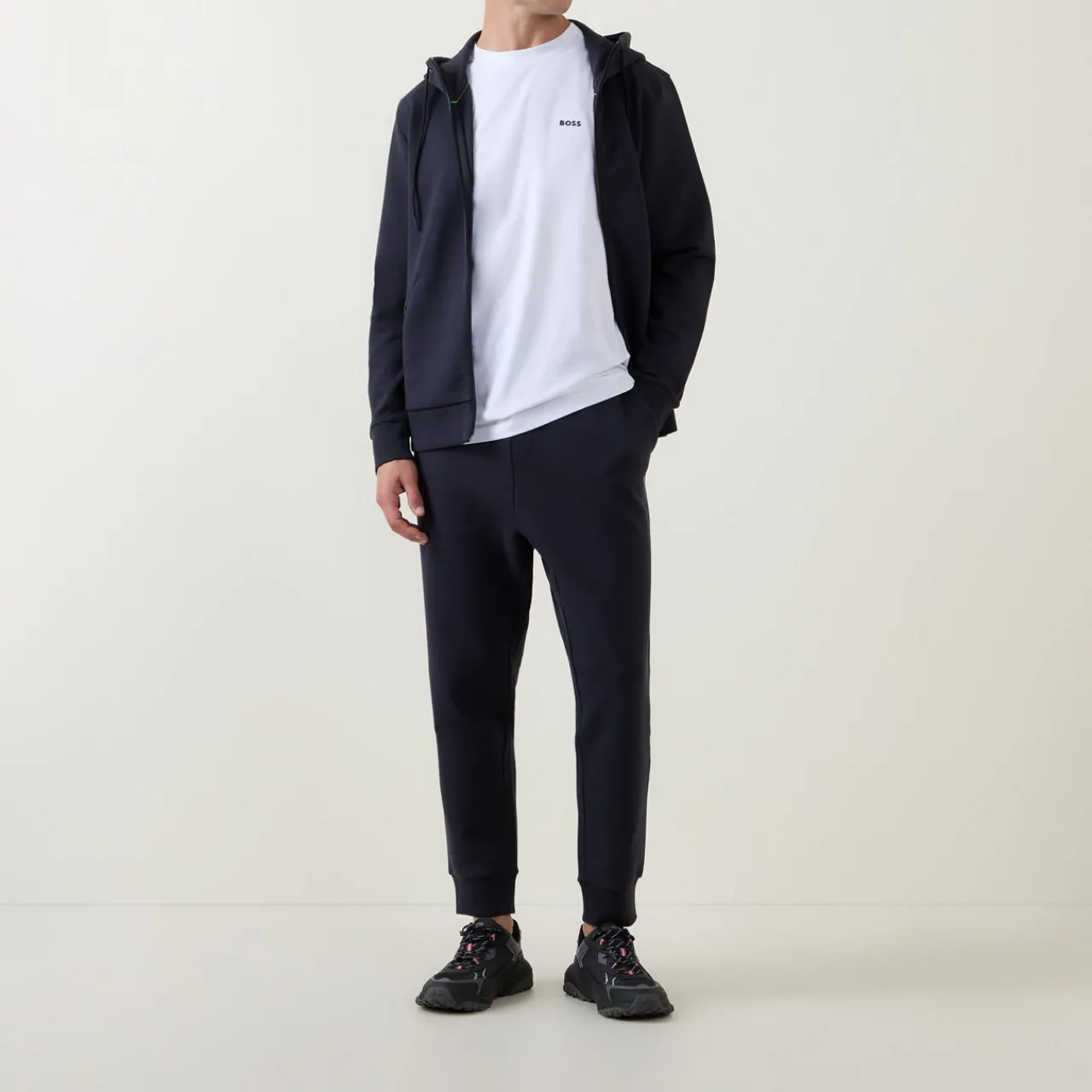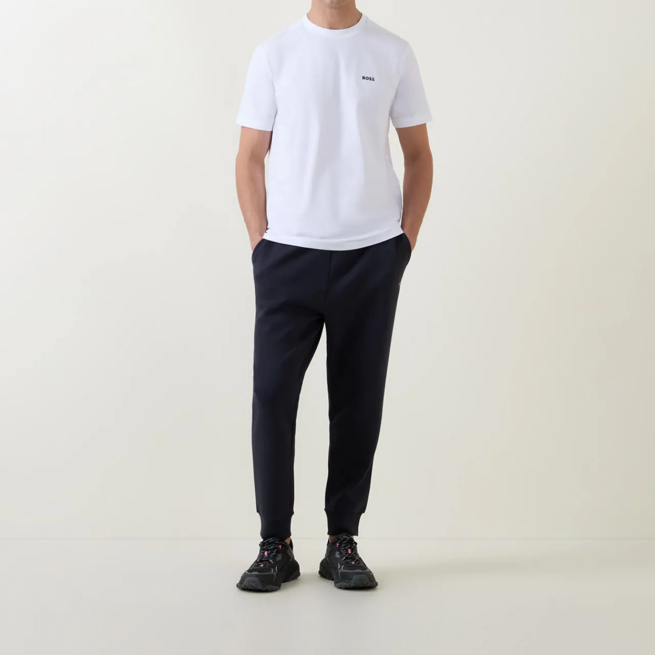 - Full length, side pockets, logo detail, ribbed trims, drawstring fastening.