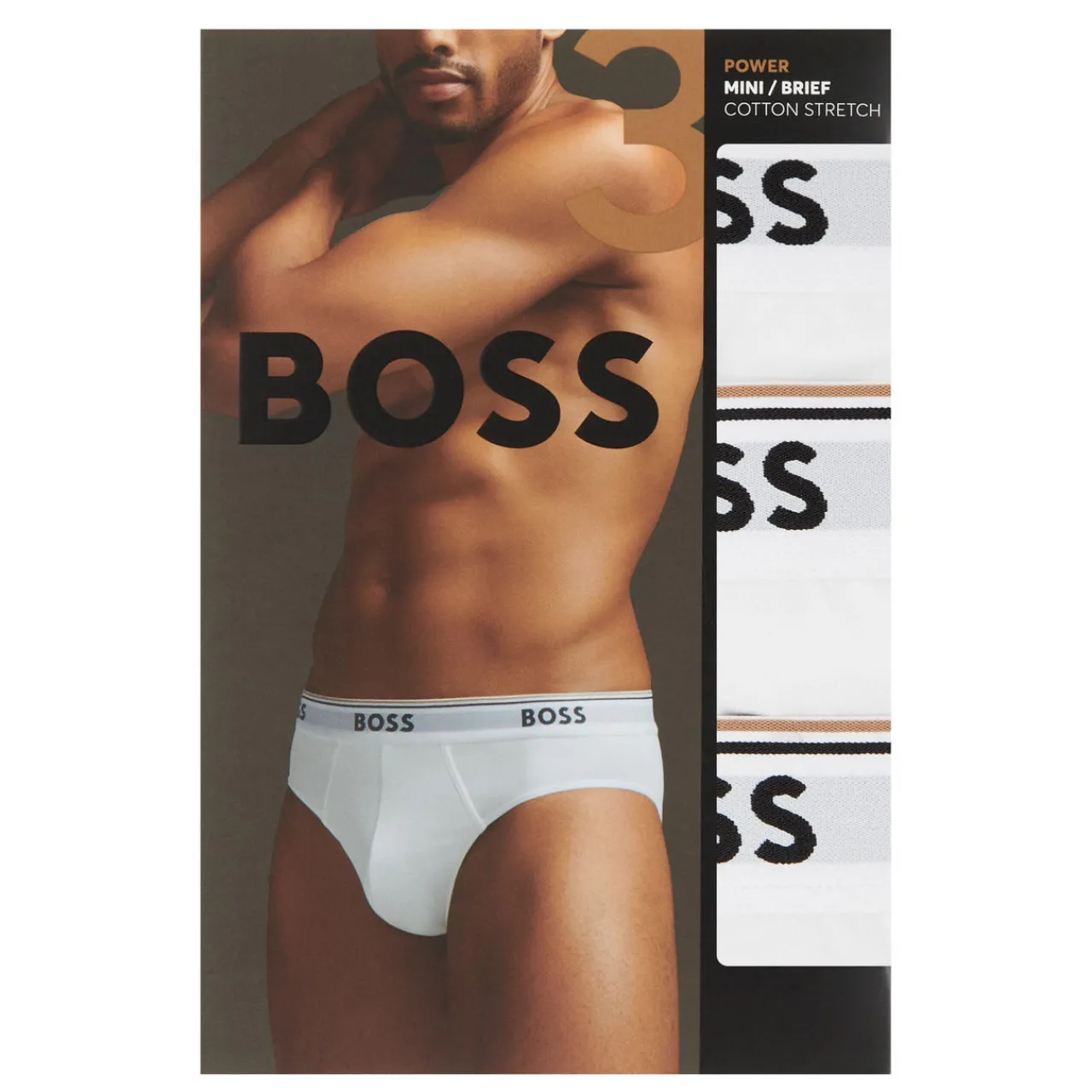 - Elasticated waistband, logo branding, smooth fabric, brief style, three-pack.