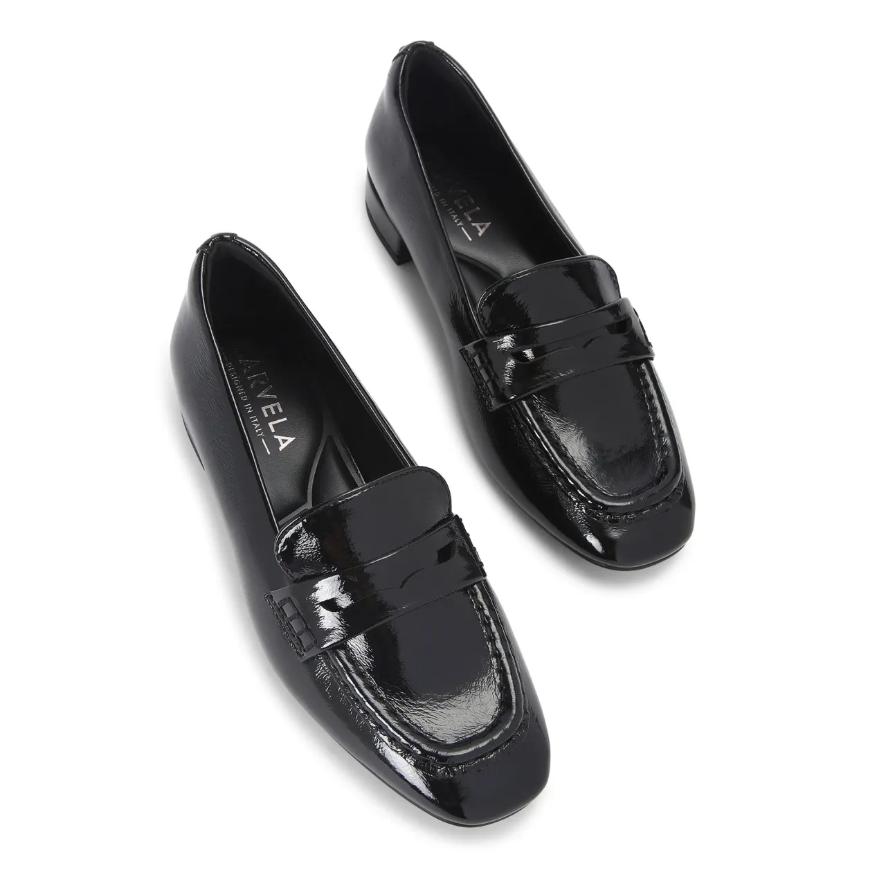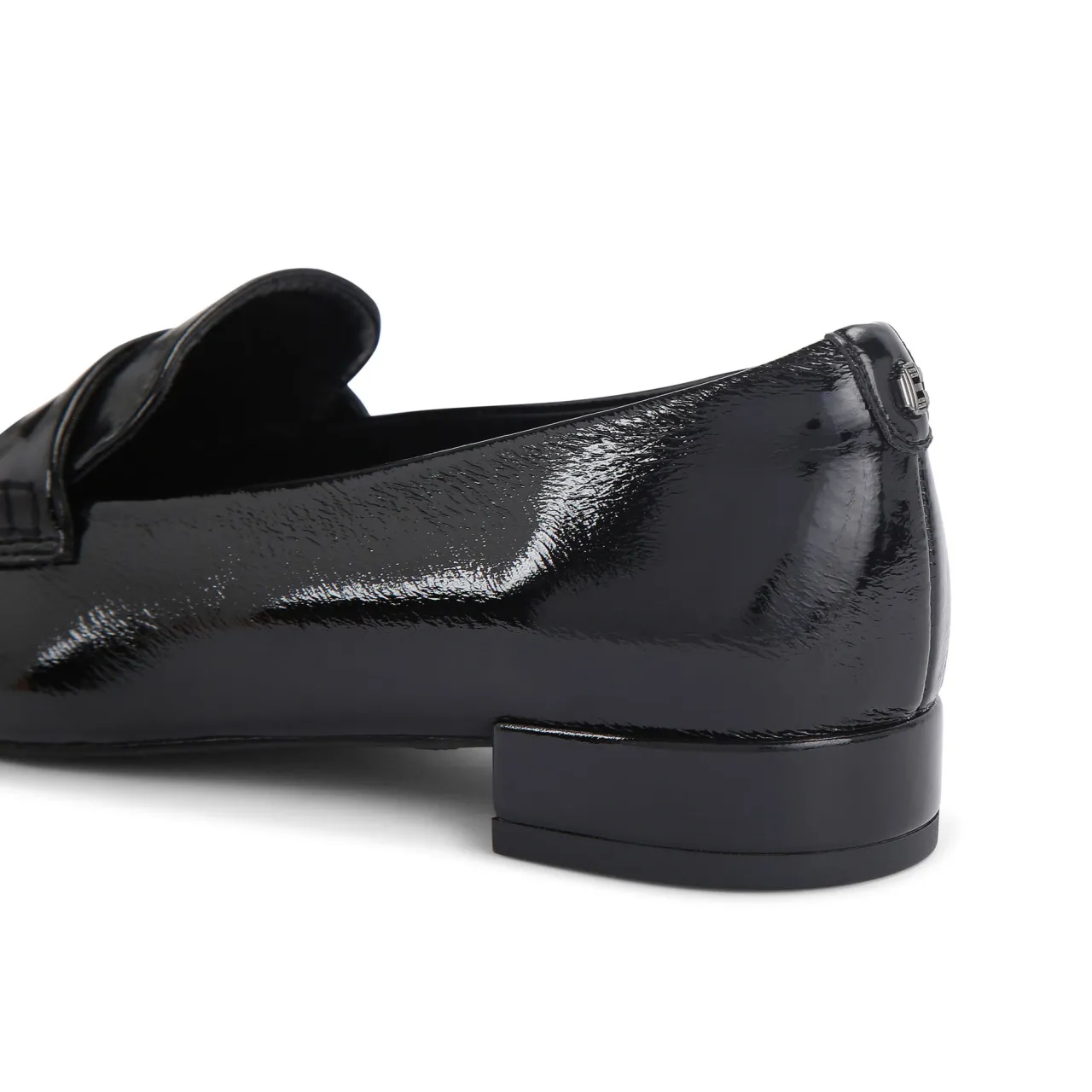 - Loafer silhouette, slip-on style, leather alternative, cut-out vamp strap