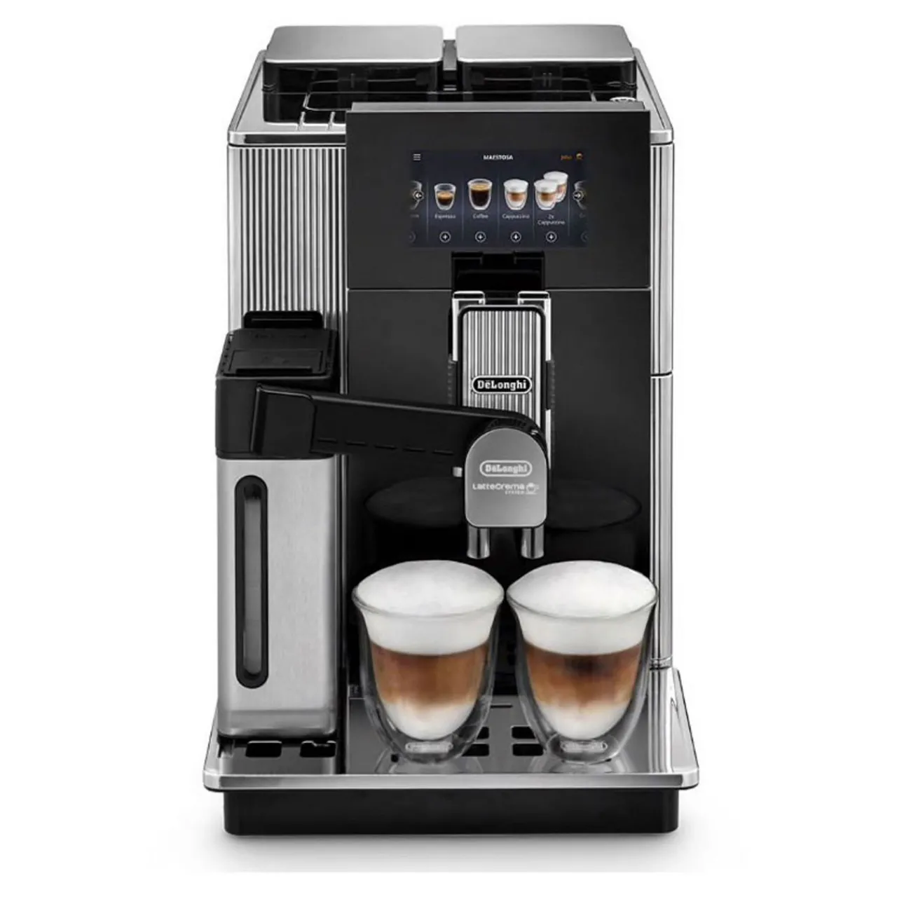Creamy milk foam with automatic LatteCrema System and 2 milk-based beverages at the same time thanks to the double outlet of the milk carafe.