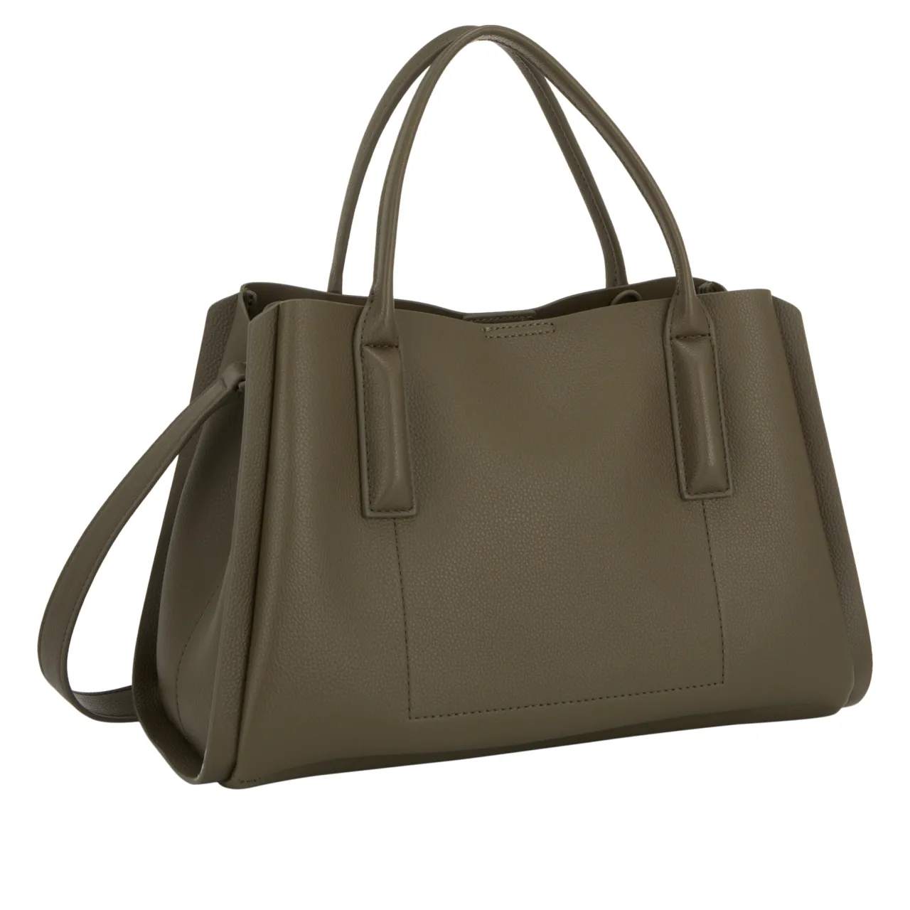 - Top carry handles, crossbody strap, tonal logo details, tab and magnetic button closure, silver-tone hardware