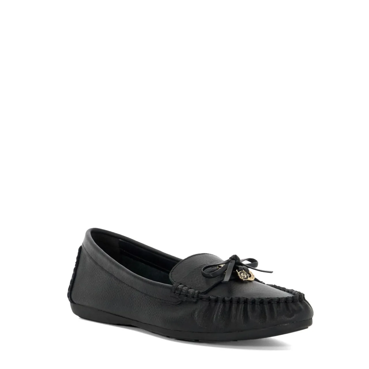- Round toe, metal trim, bow trimmed with a gold logo and round jewelled charm, cushioned insole