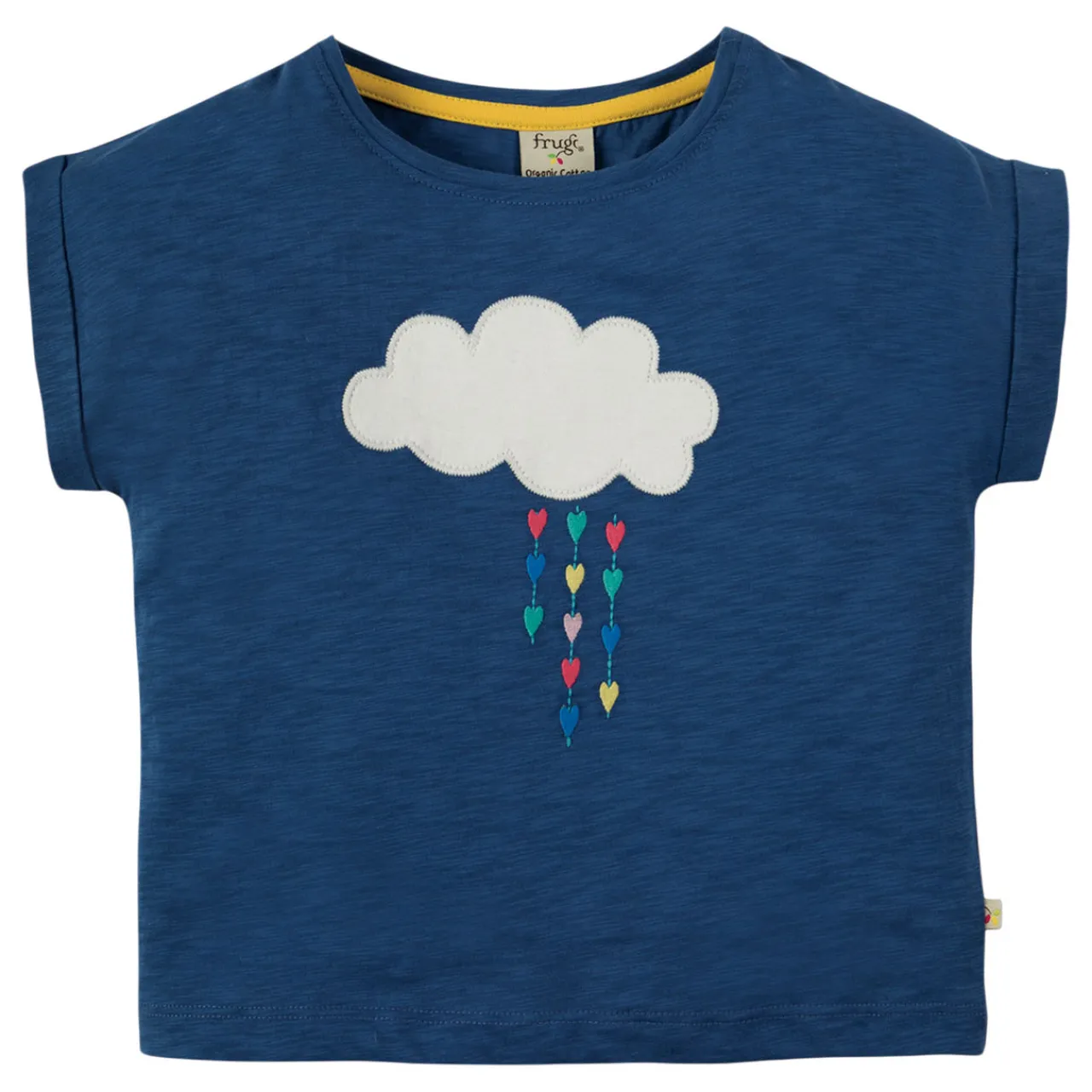- Round neck, short sleeves, turn-up cuffs, straight hem, cloud graphic on the front, slub finish