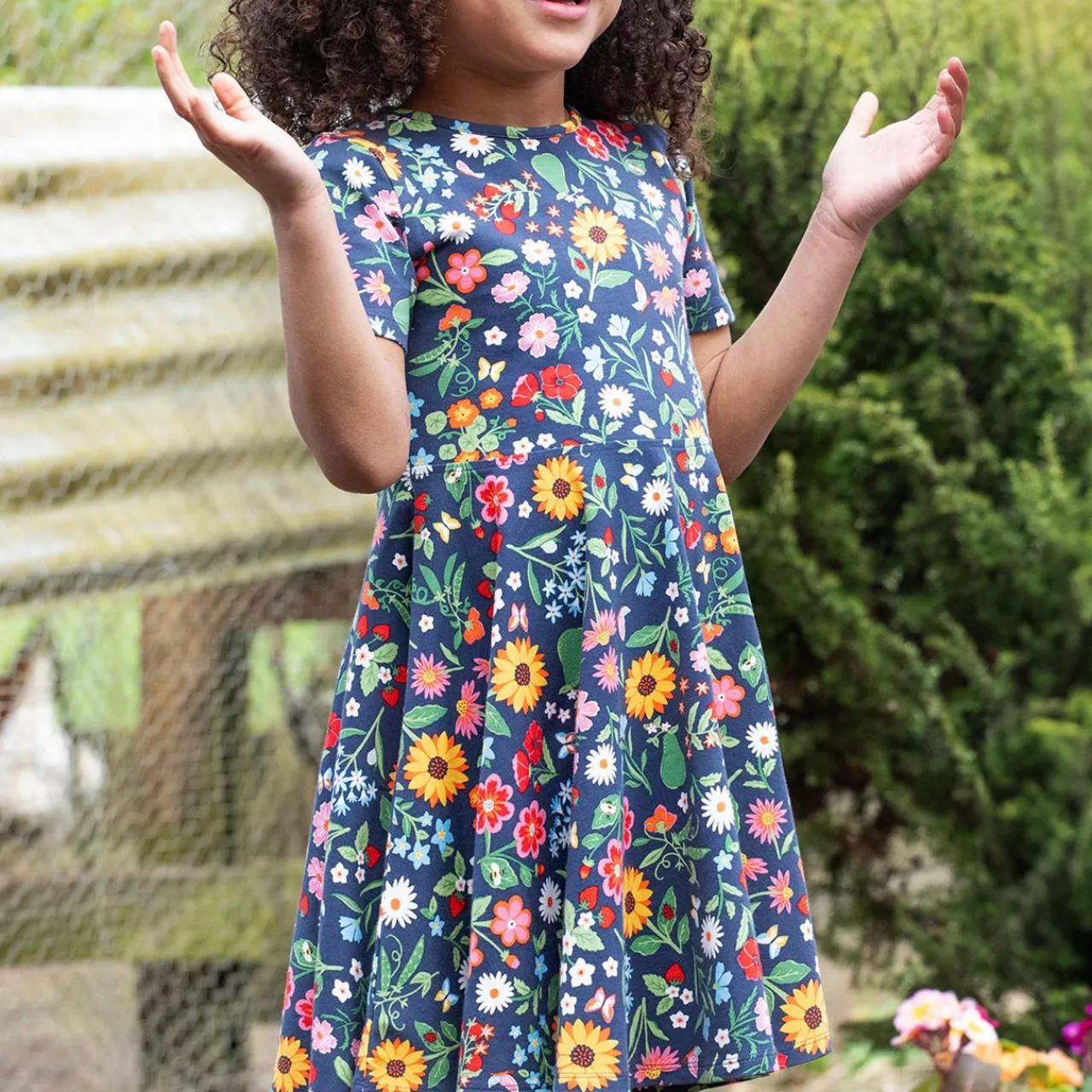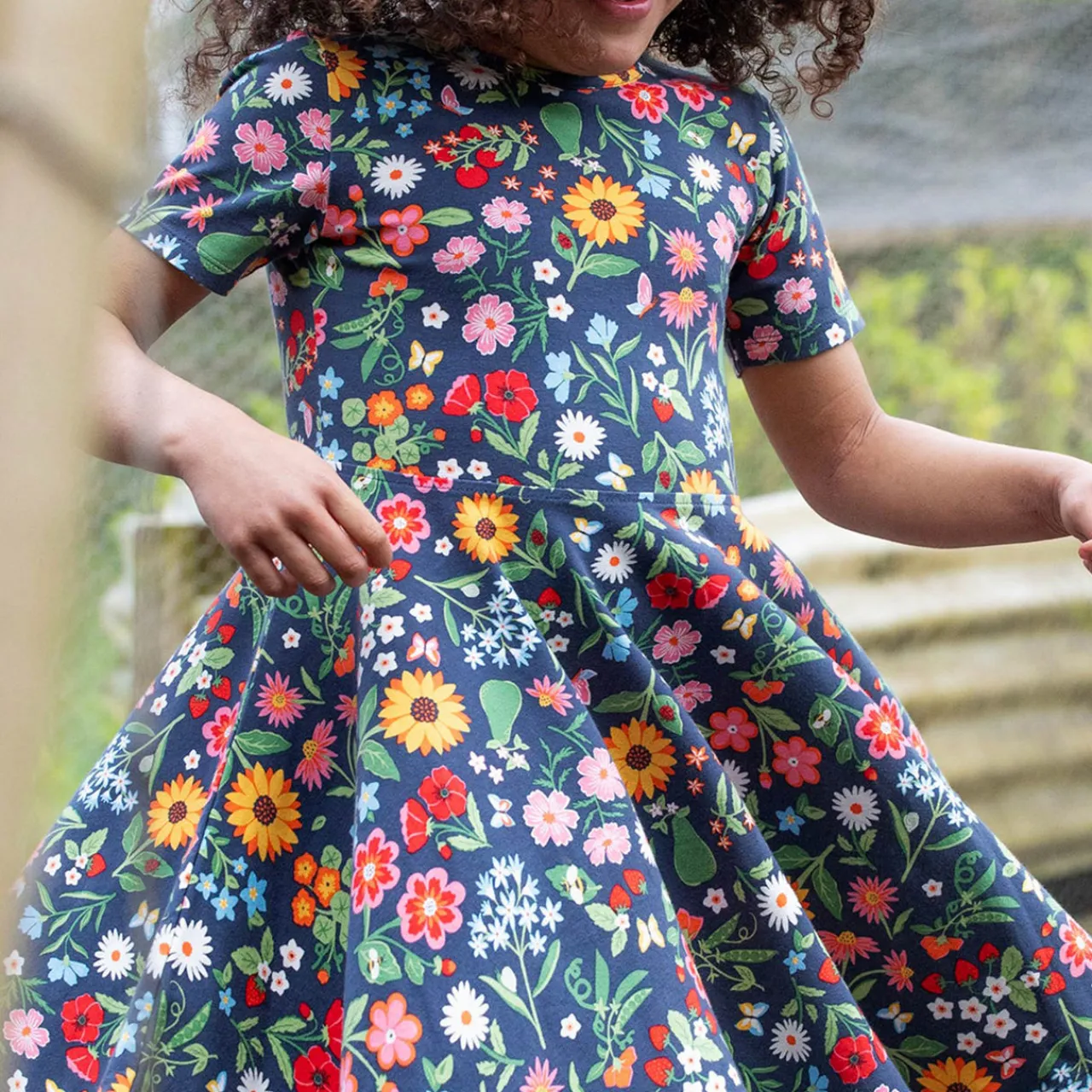 - Short sleeves, jersey fabric, skater style, twirl-ready skirt, stretch-fused fabric, knitted, round neckline