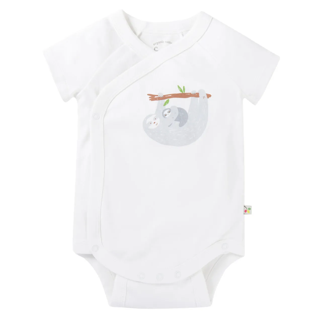 - Bodysuit 1: kimono-style openings, handy front popper fastenings, double row of popper fastenings underneath, soft and durable cotton finish, sloth rainbow print, long sleeves. Bodysuit 2: kimono-style openings, handy front popper fastenings, double row of popper fastenings underneath, soft and durable cotton finish, sloth printed design, short sleeves