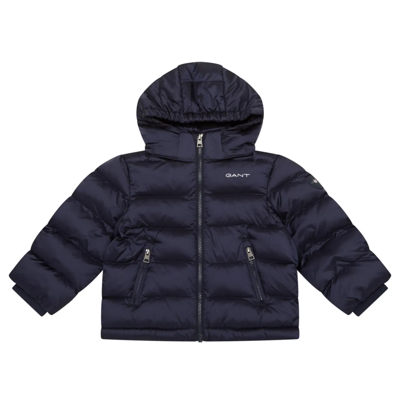 - Hooded, long sleeves, ribbed cuffs, padded, logo detail, zip fastening