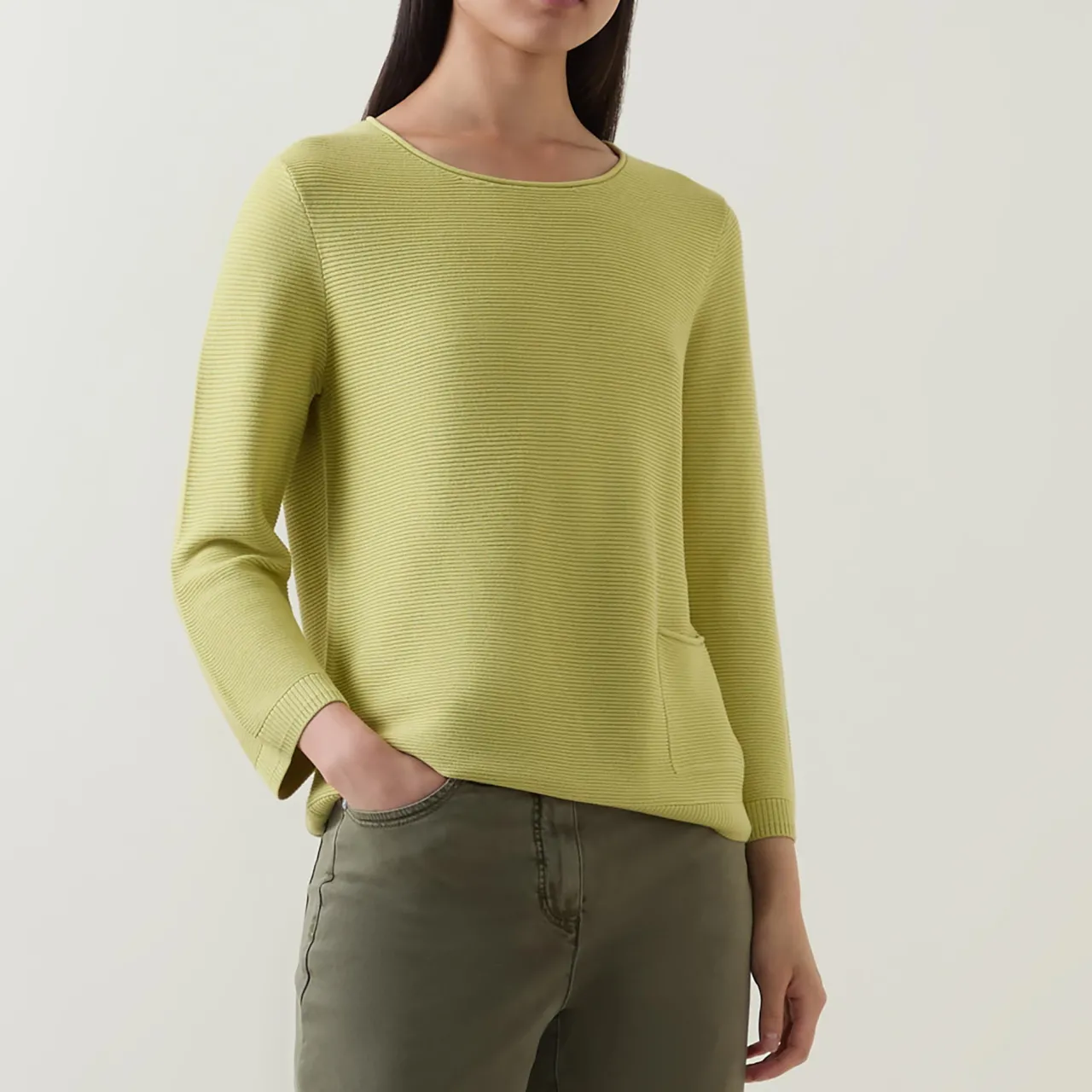 - Round neckline, long sleeves, one patch pocket, pullover style, ribbed fabric