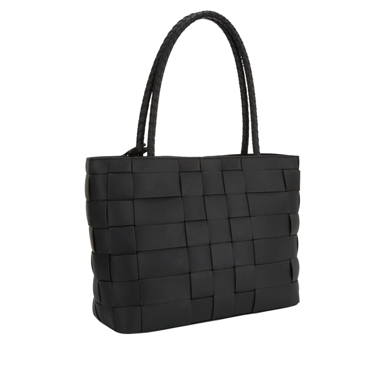 - Woven design, top handles, magnetic closure, hanging luggage tag