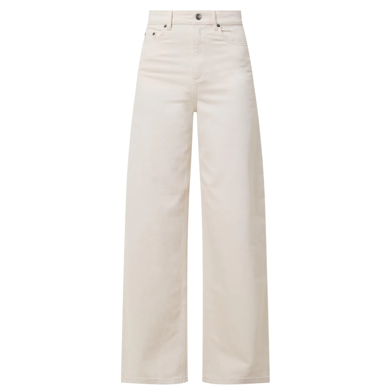 - Zip-fly and button fastening, belt loops, five-pocket design, tonal stitching, rear logo detail, mid-rise, straight-cut leg, smooth denim finish