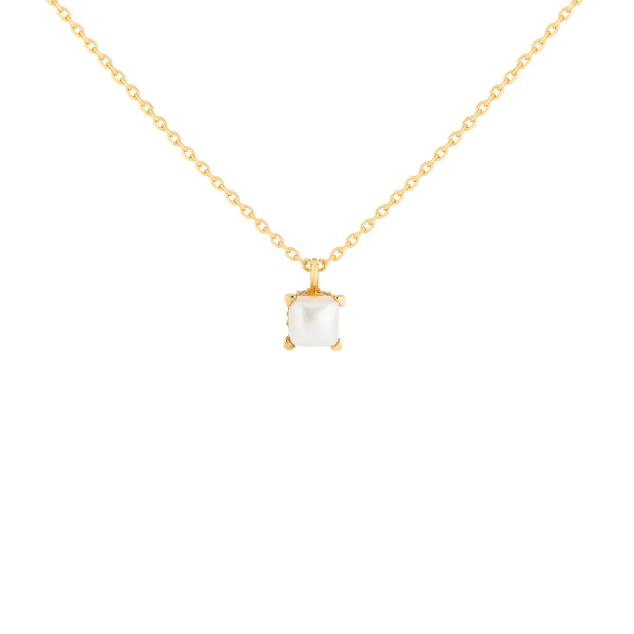 - Glass pearl pendant, four-prong design, adjustable, signature lobster claw fastening, gold-tone finish