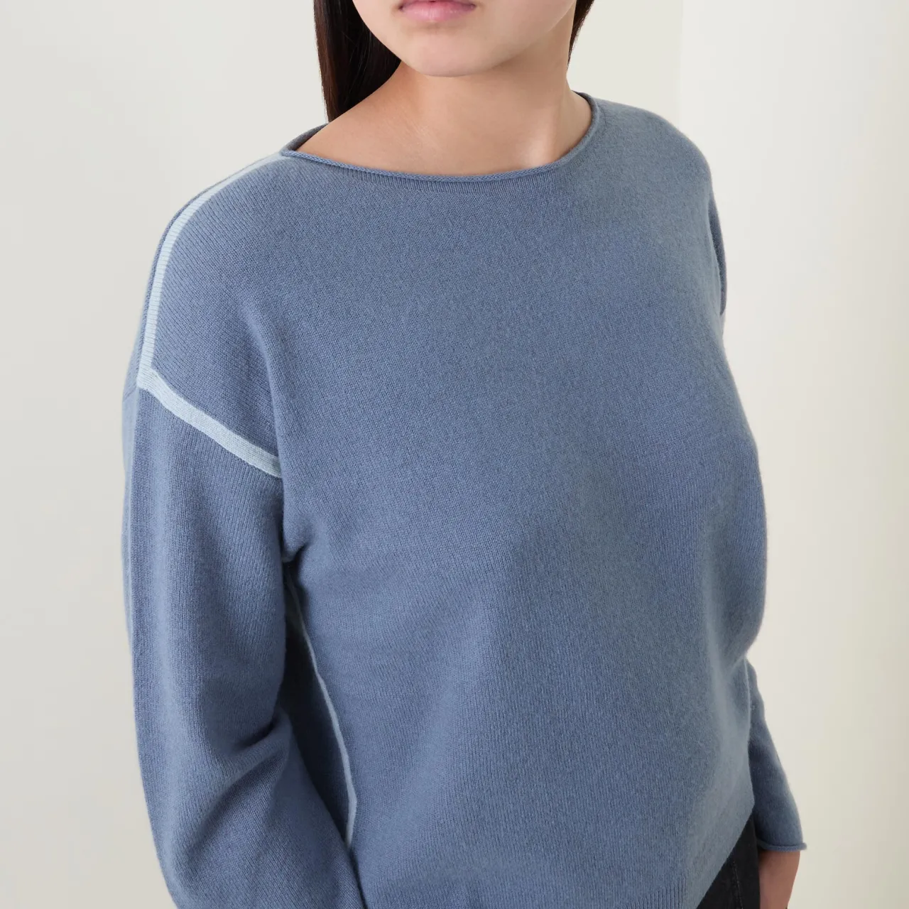 - Crew neckline, long sleeves, dropped shoulders, side stripe detail, pullover style, fine-knit finish
