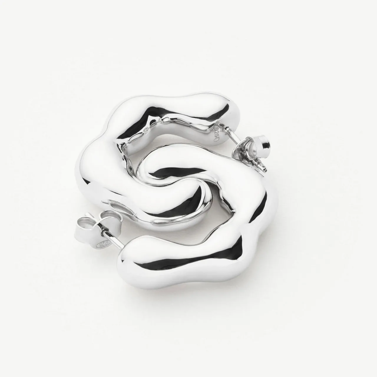 - Molten hoops, voluminous puffed design, lightweight, stackable design, silver-tone finish, collaboration with Eny Lee Parker