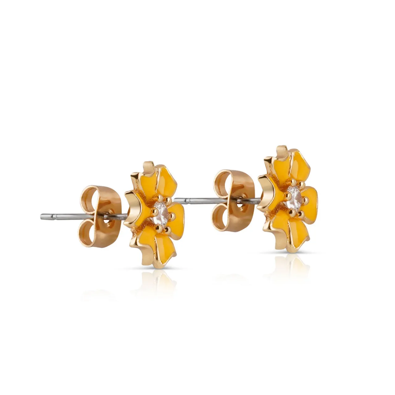 - Floral-shaped design, yellow enamel detailing, butterfly post fastenings, gold-tone finish, presented in a branded gift box