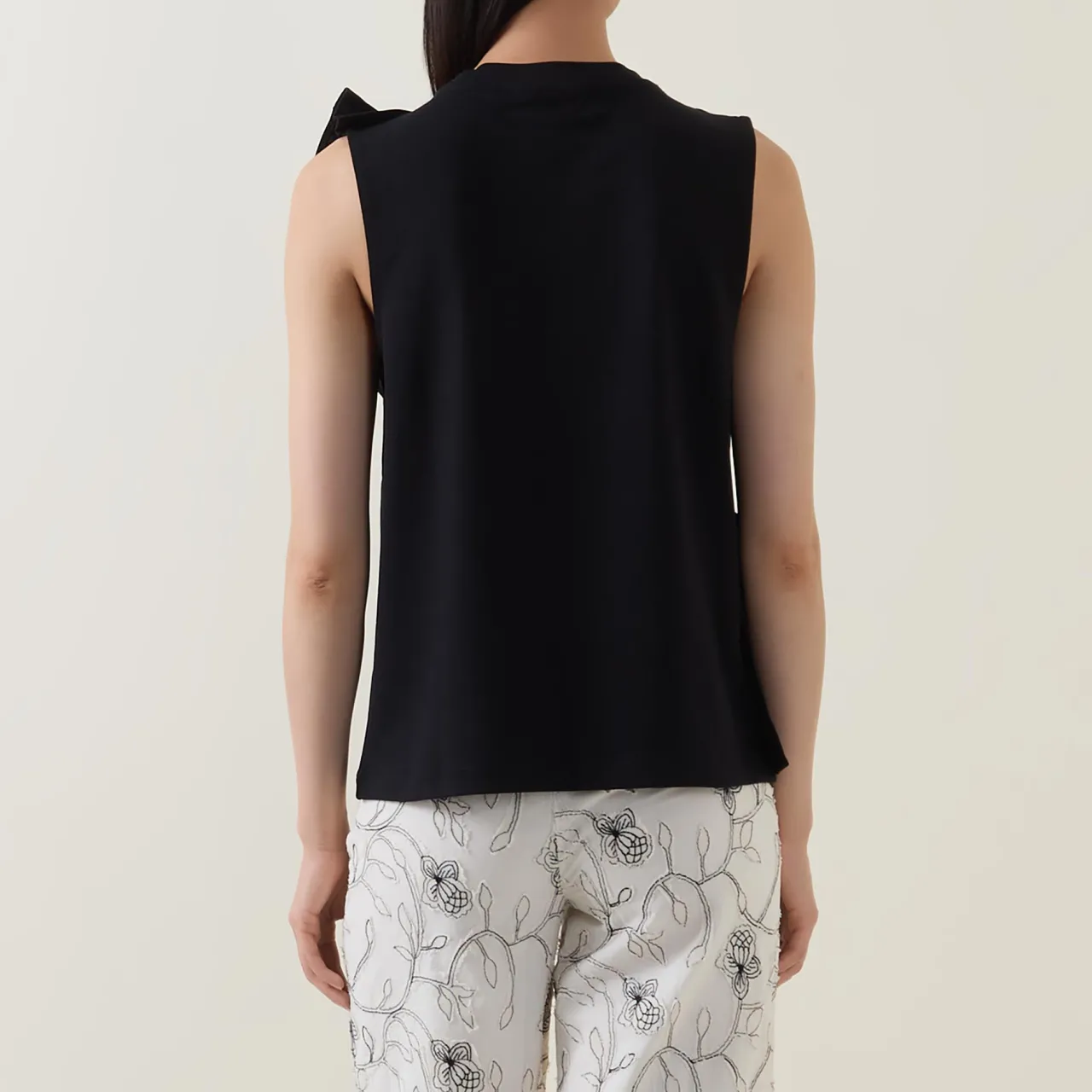- Round neckline, sleeveless, straight hemline, ruffle detailing
