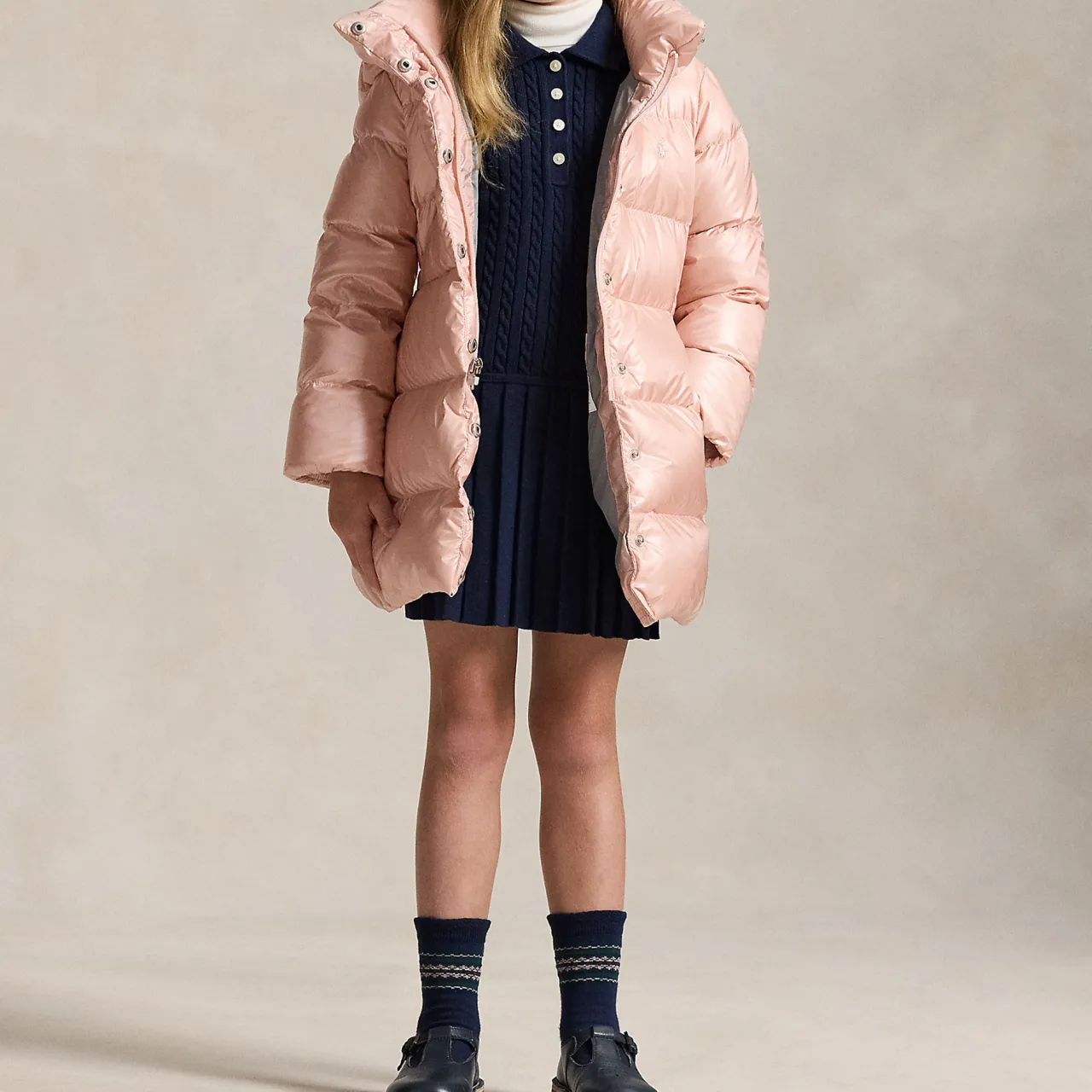 - 650 fill power, signature embroidered pony at the left chest, mockneck, snap-off hood, full-zip front, snapped storm placket, long sleeves with elasticised cuffs, princess seams at the front, elasticised waist, side on-seam snapped pockets, elasticised hem, signature name tag label at the interior, fully lined and filled