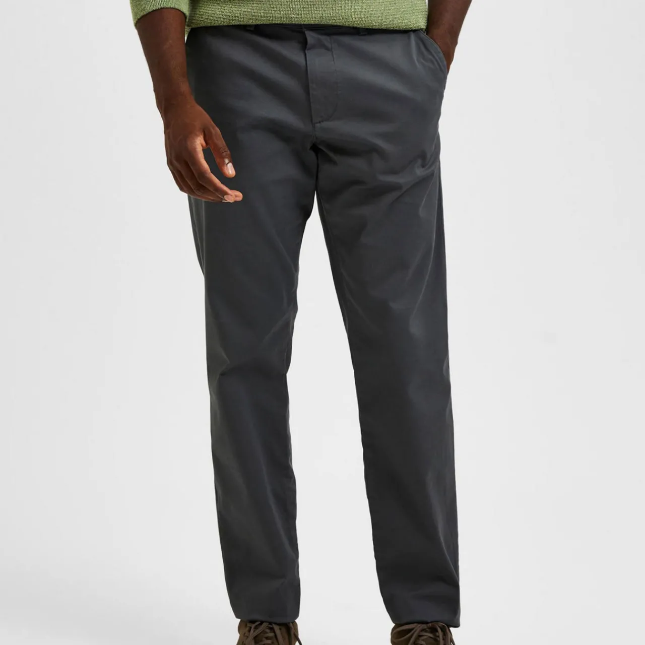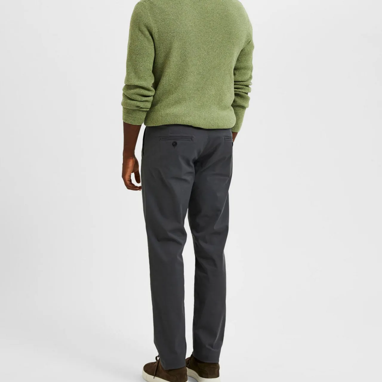 - Button and fly zipper fastening, belt loops, side entry pockets, rear pockets, stretch-fused fabric
