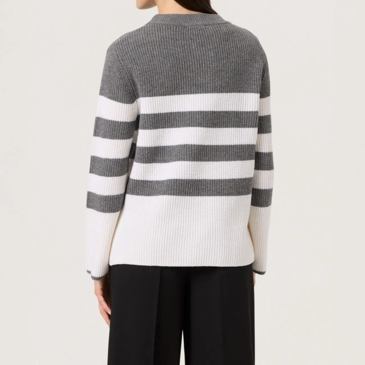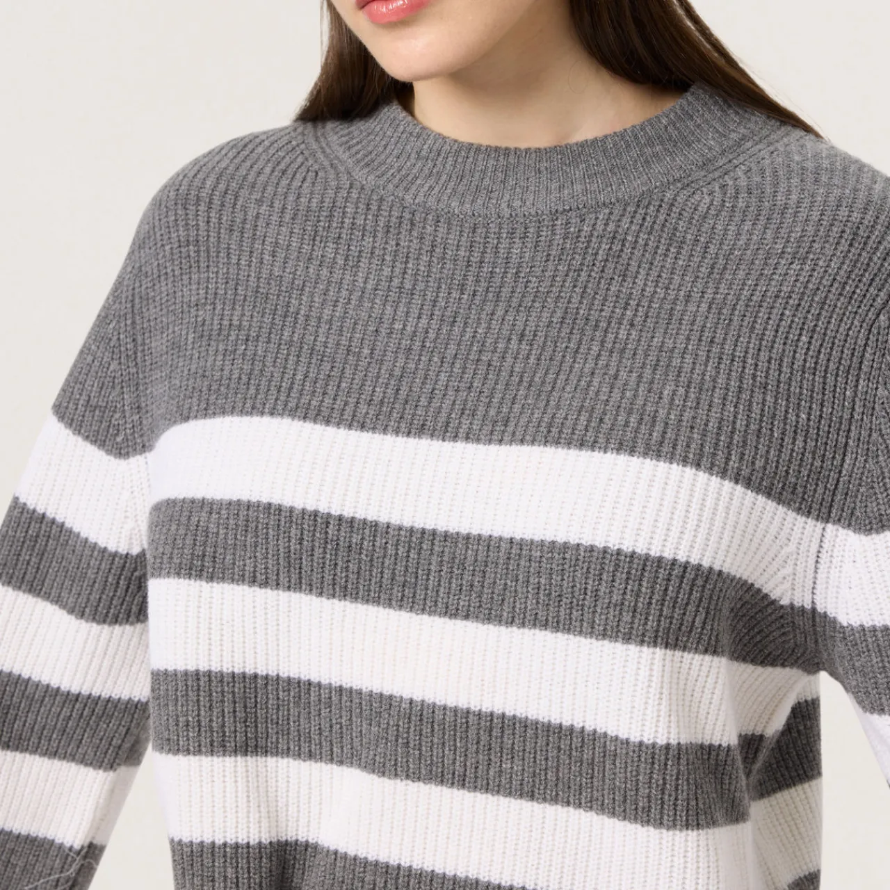 - Crew neckline, casual style, wide stripes, soft rib knit fabric, long sleeves, pull-on style