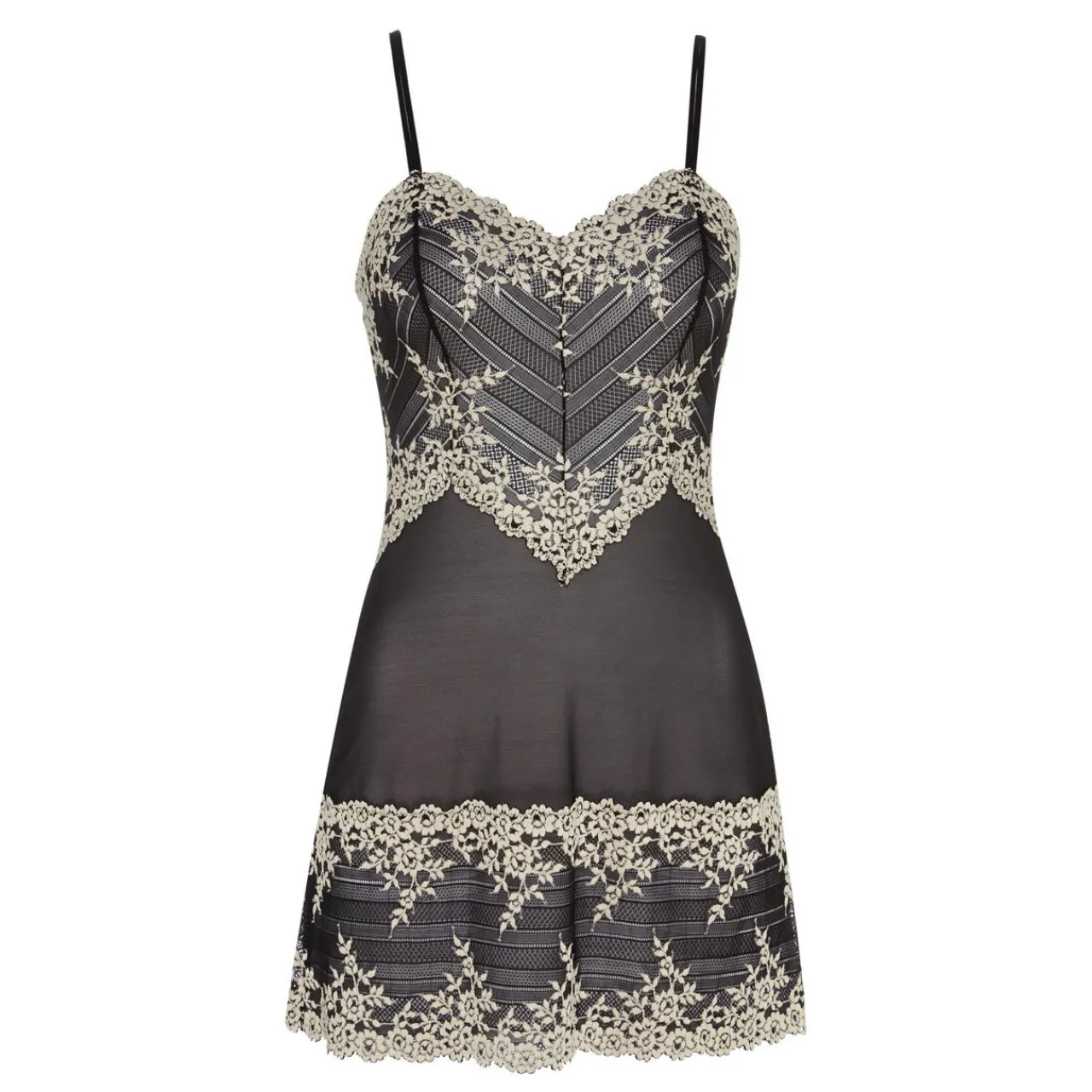 - Adjustable straps, lace panelling, semi-sheer.