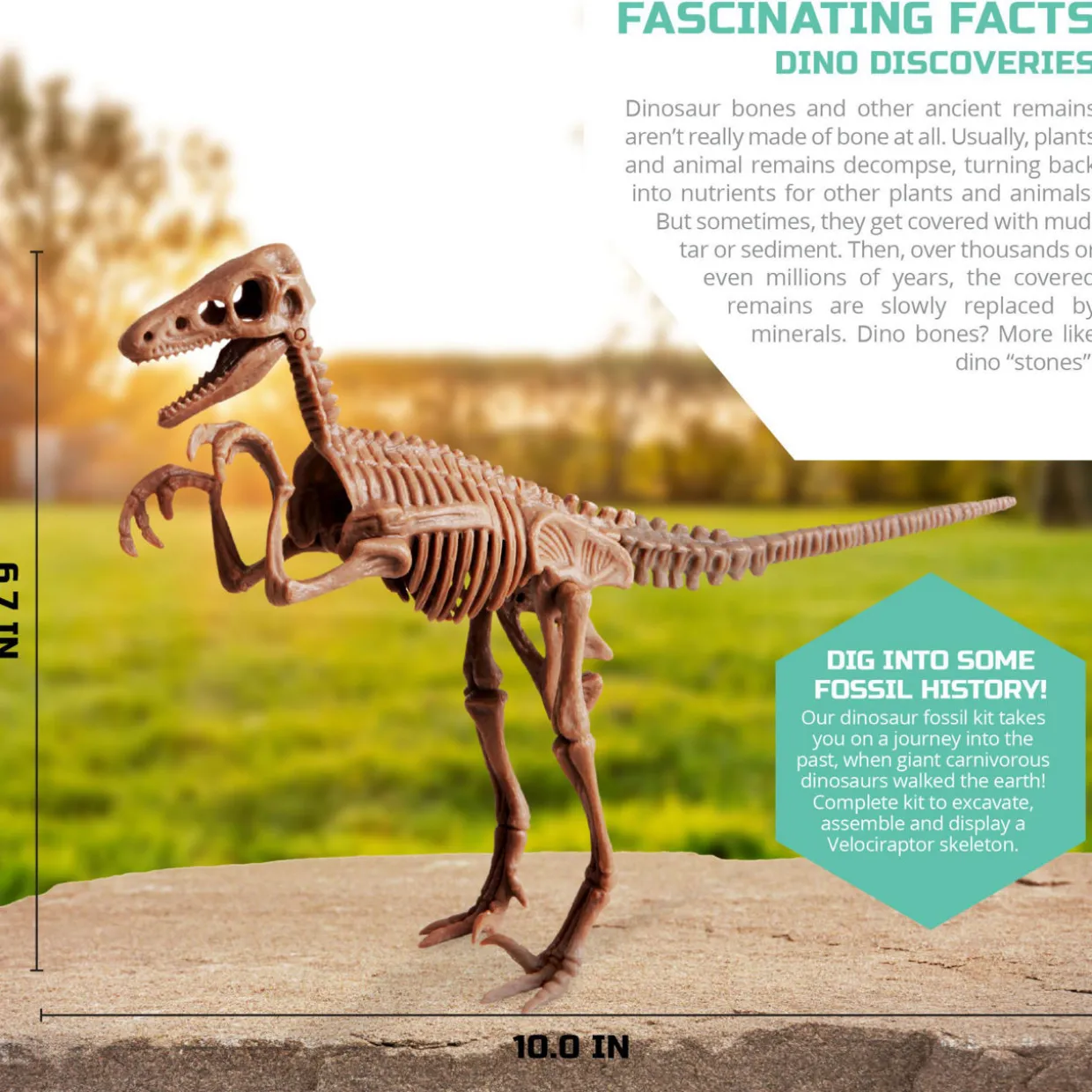 - Excavation kit, three-piece tool kit, create a 3D skeleton model, 10 dinosaur bones