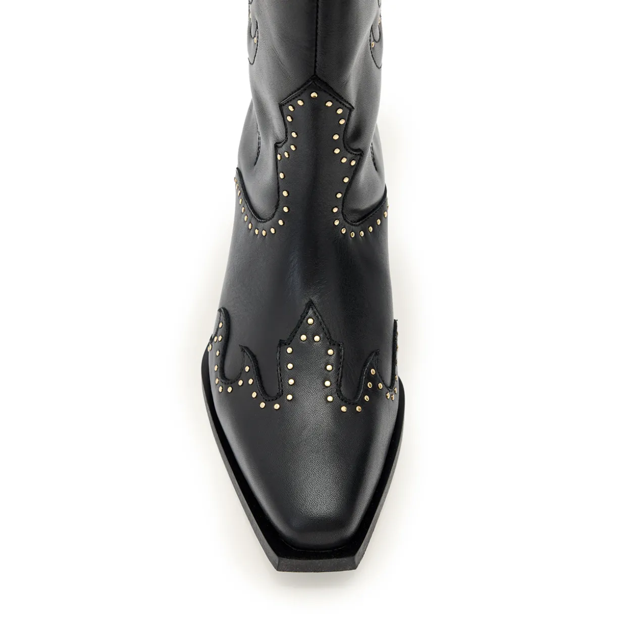 - 3mm pin studs detail, western style, stitchwork all over, slightly chunkier heel, comfortable fixed cushioned insole