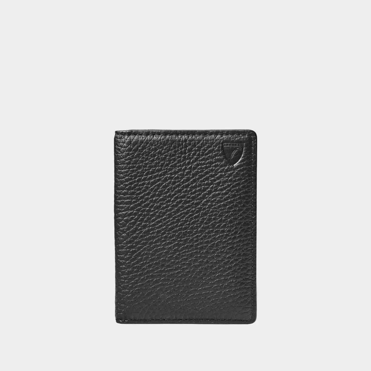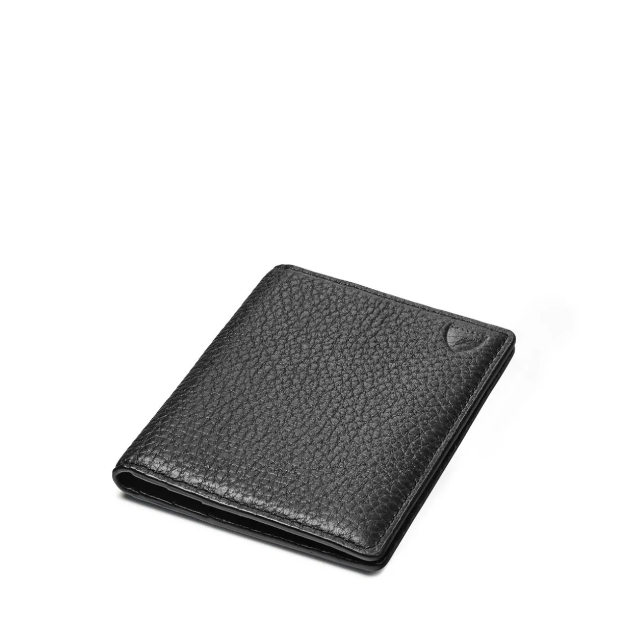 - Full-grain leather, compact design, brand logo details, fold-over style, lined