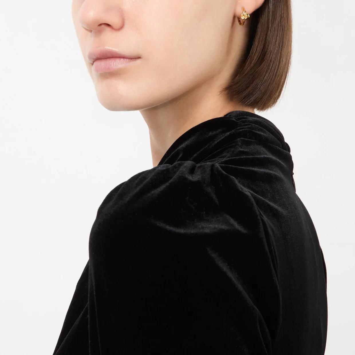 - Double knot design, huggies hoop earring, snap post closure, gold-tone finish