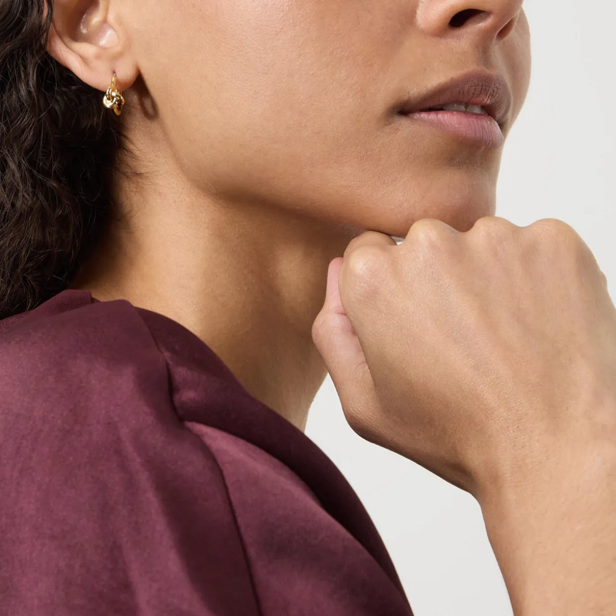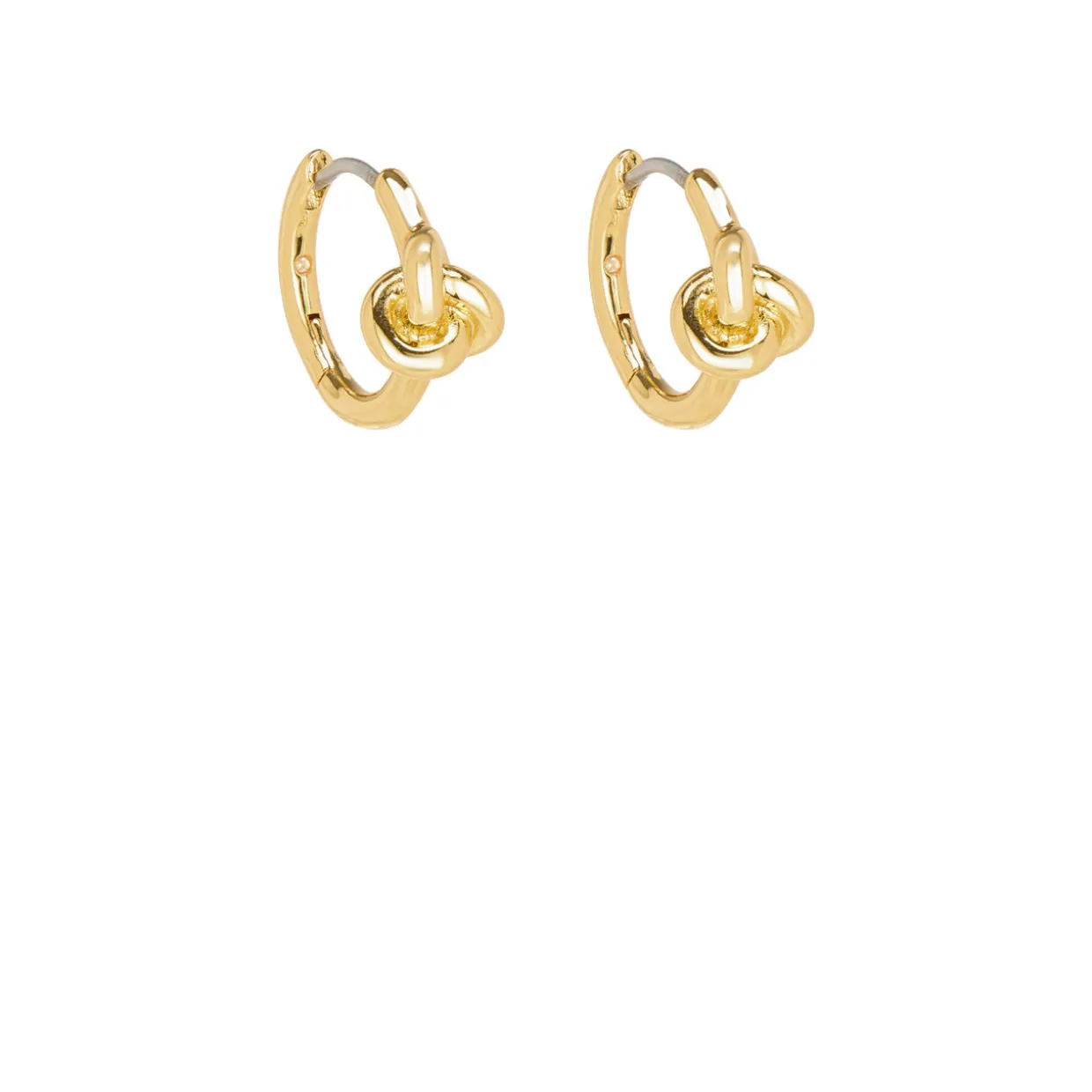 - Huggie-style, snap-post closure, double knot design, gold-tone finish
