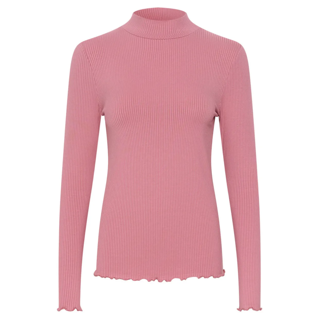 - Turtleneck, long sleeves, roll seam on cuffs and hemline, pull-over style, ribbed-knit finish