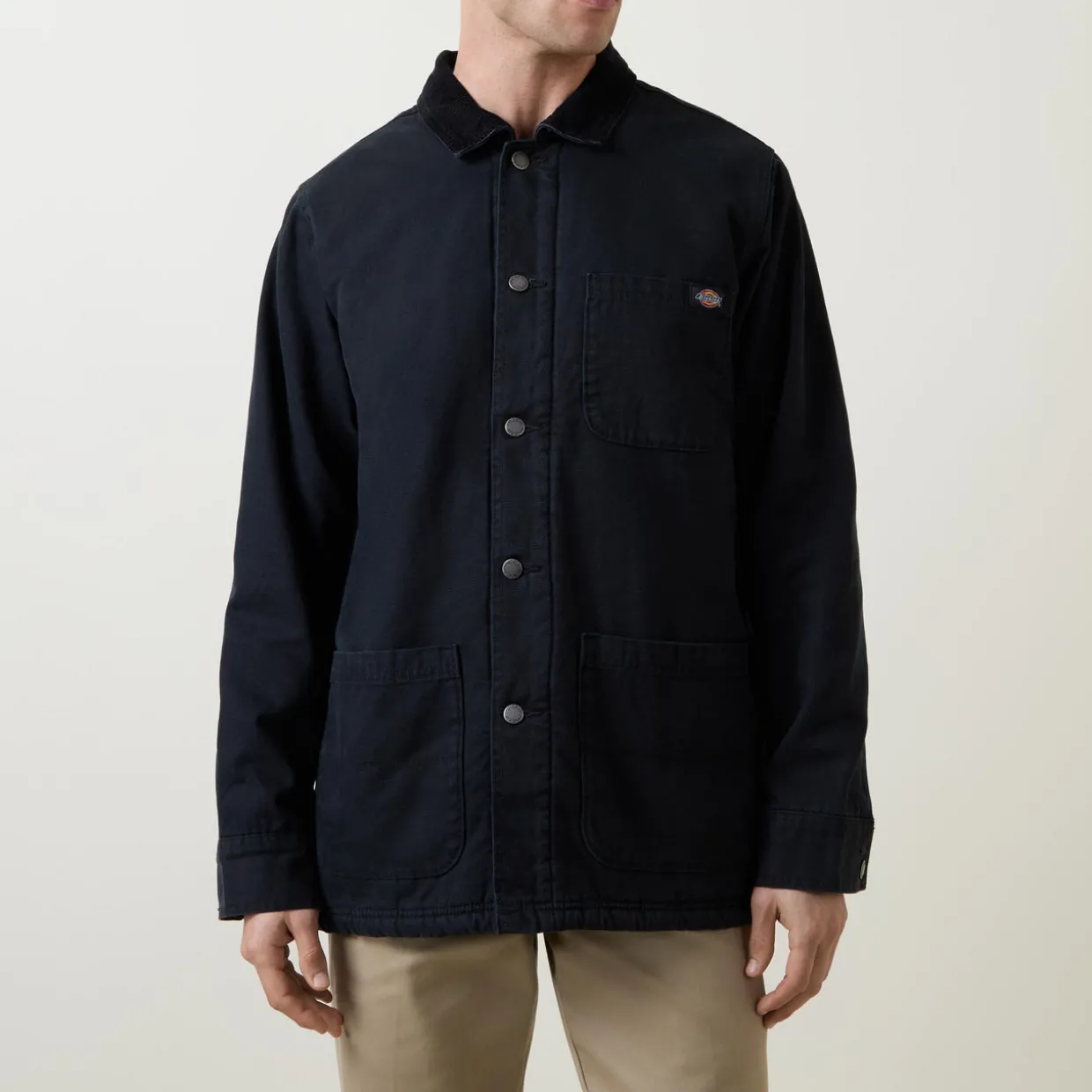 - Pointed collar, long sleeves, dropped shoulders, button fastening, chest pocket, two side patch pockets, adjustable cuffs, tonal stitching, straight hemline