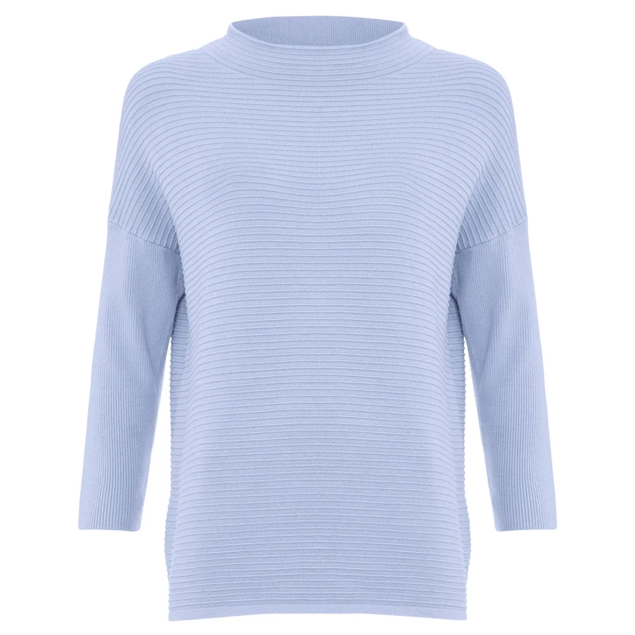 - Knitted, contrast ripple detailing, relaxed silhouette, soft roll neckline, no fastening, three-quarter-length sleeves, textured finish
