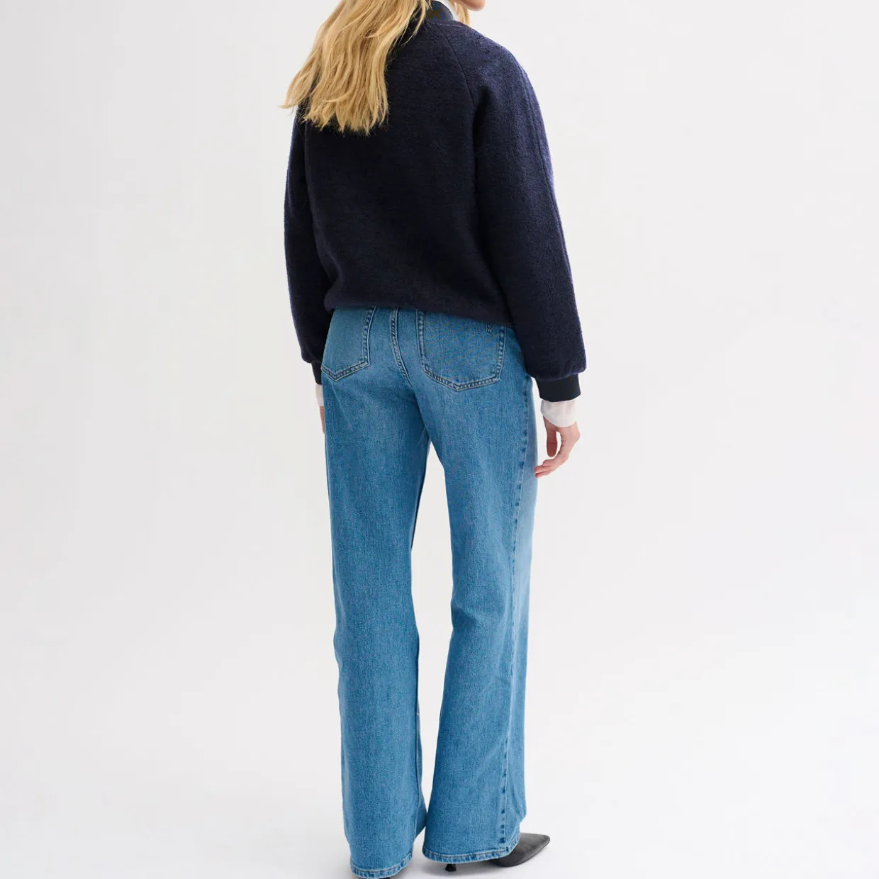 - Bomber collar, long sleeves, full zip-through fastening, two side pockets, elasticated hemline, stretch cuffs, felt finish