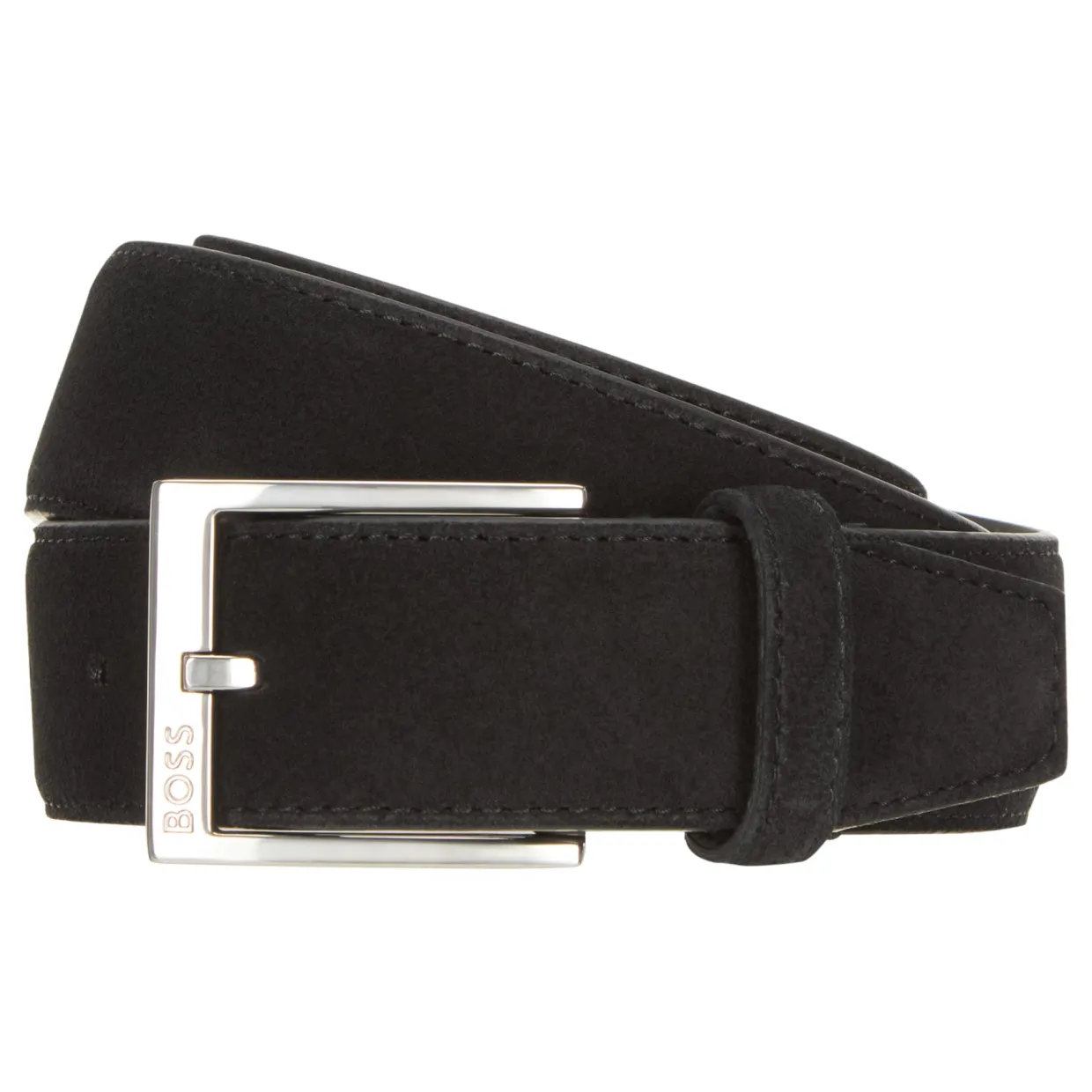 - Suede finish, silver-toned hardware, square adjustable buckle with logo branding