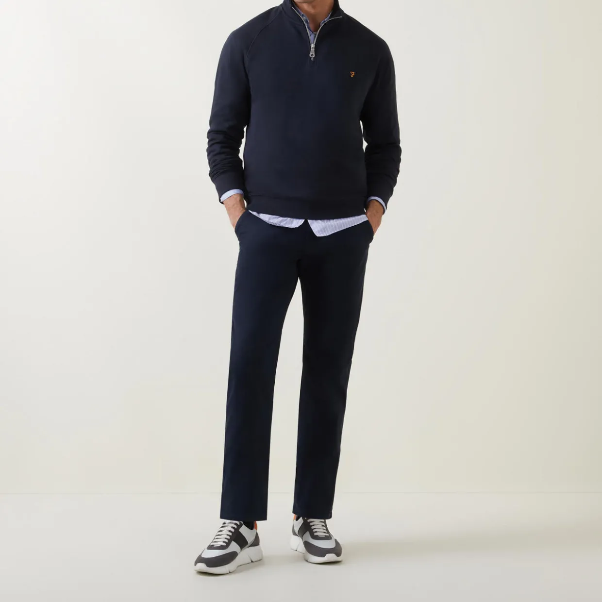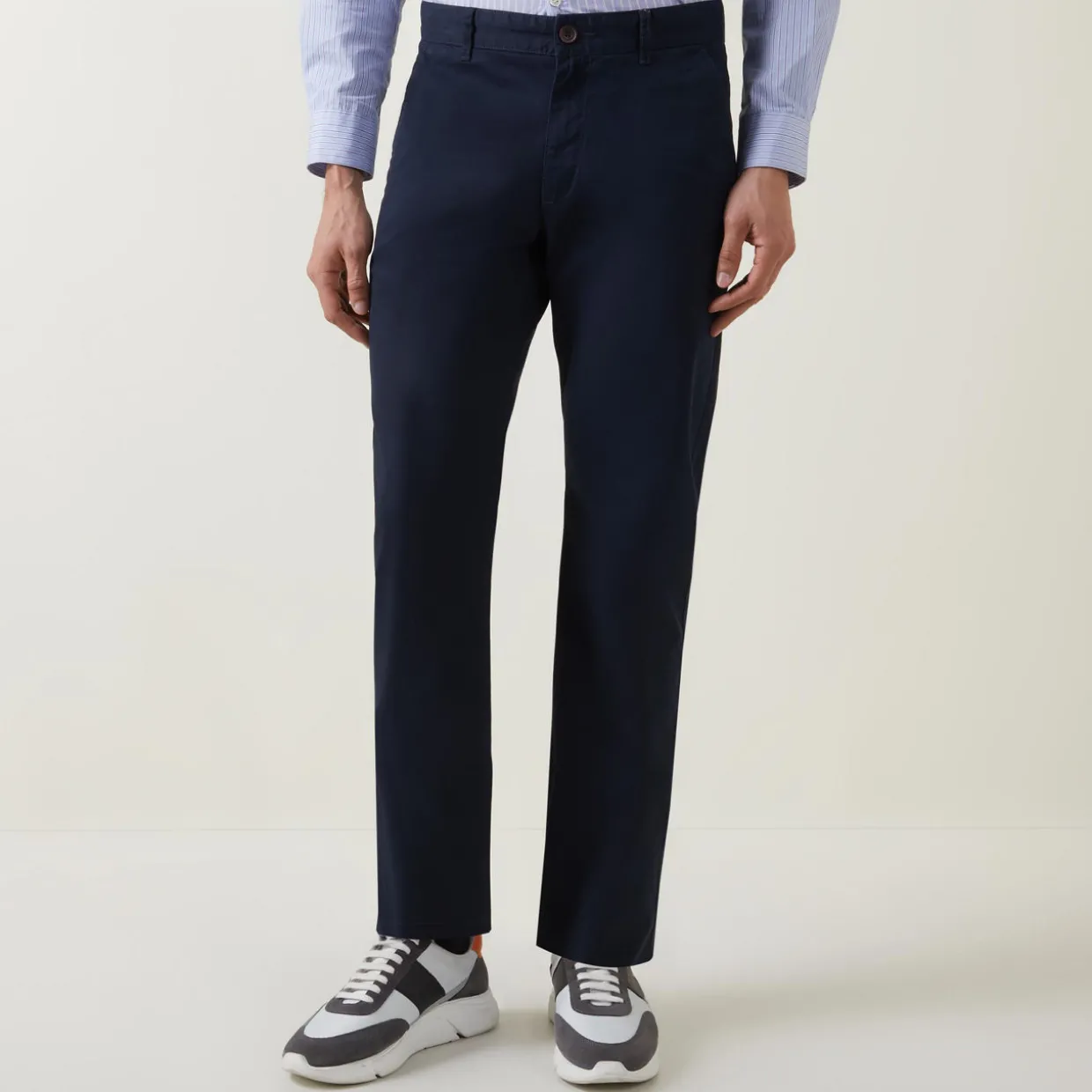 - Zip-fly and button fastening, belt loops, four-pocket design, tonal stitching, logo patch, smooth fabric