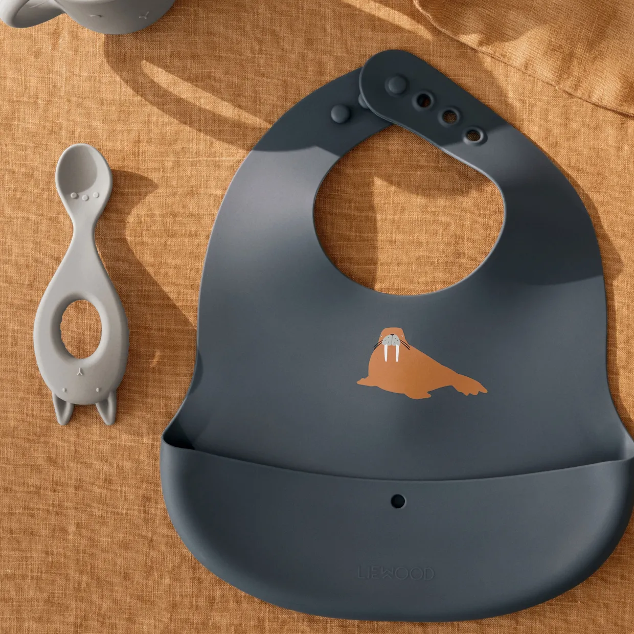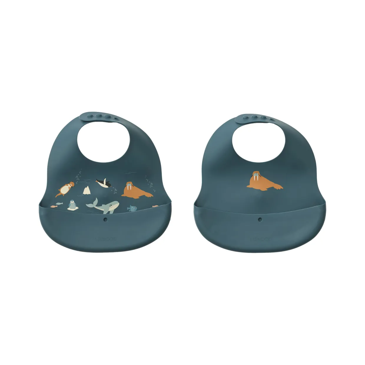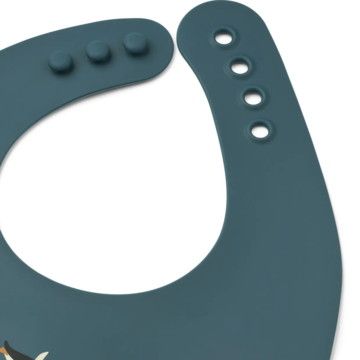 - Reusable, silicone bibs, soft, flexible, waterproof, adjustable closure, easy to clean, animal design
