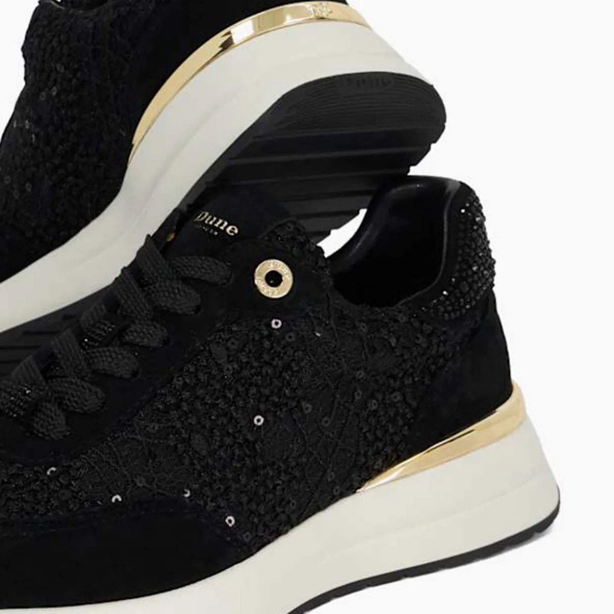 - Round toe, wedge heel, classic lace-up fastening, gold-tone eyelets and details, branded tongue, tonal stitching, textured sequin embellishment