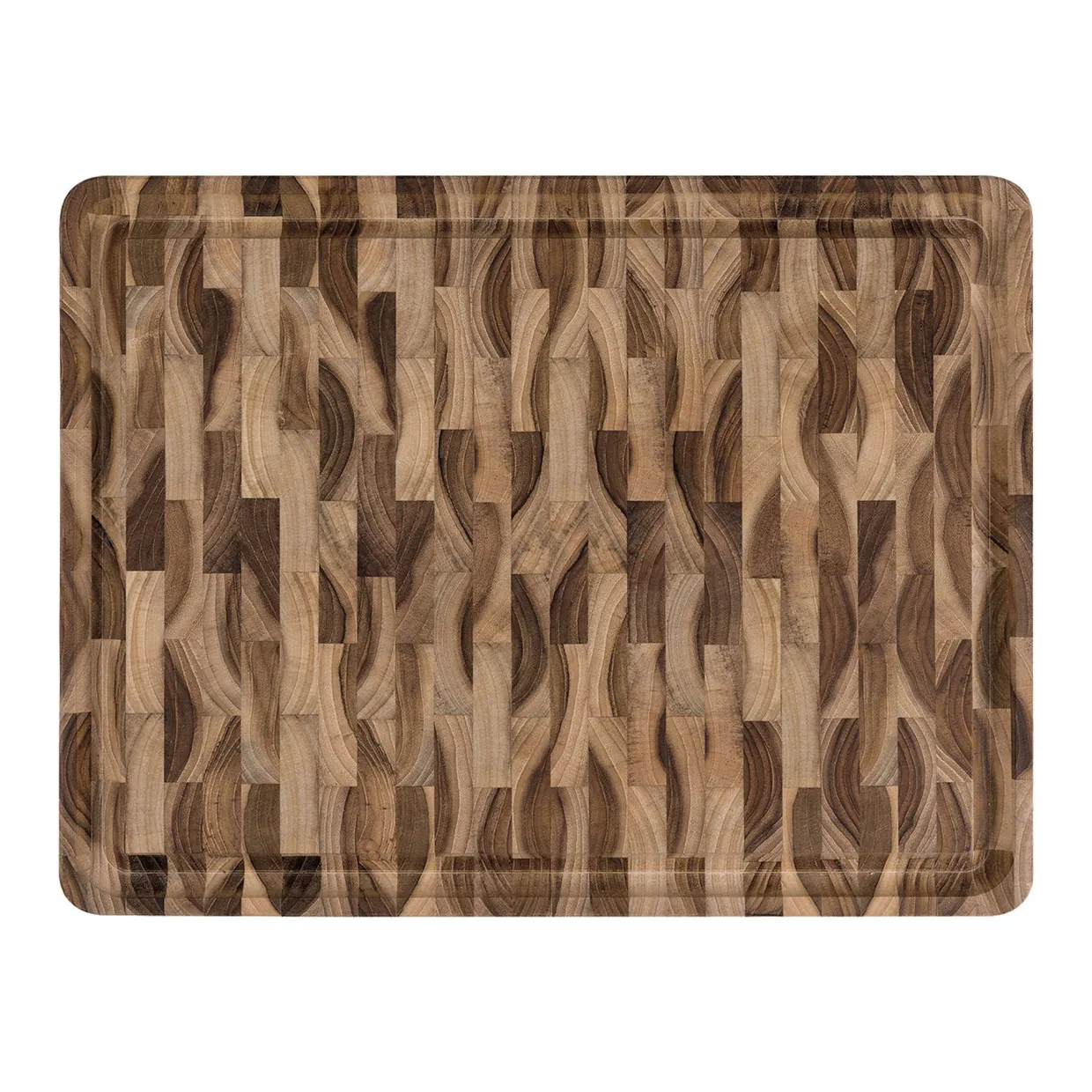 - Wooden chopping board, end-grain design, mineral oil finish with microbial protection, deep juice rim, can be used as a serving board