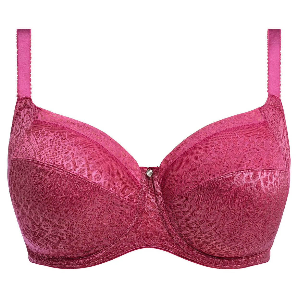- Underwired, side support, wide wires for additional comfort and support, three piece cup with side support for great uplift and forward projection, fully adjustable shoulder straps, modern soft handle flat lace fabric with contemporary graphic design adorns the cups and cradle, flat lace top cup features stretch band along neck edge for ease of fit, tow back with angled ring to give central pull through the straps and to prevent strap slippage, concealed seams in inner cup with seamless bottom cup, metallic charm, hook fastening